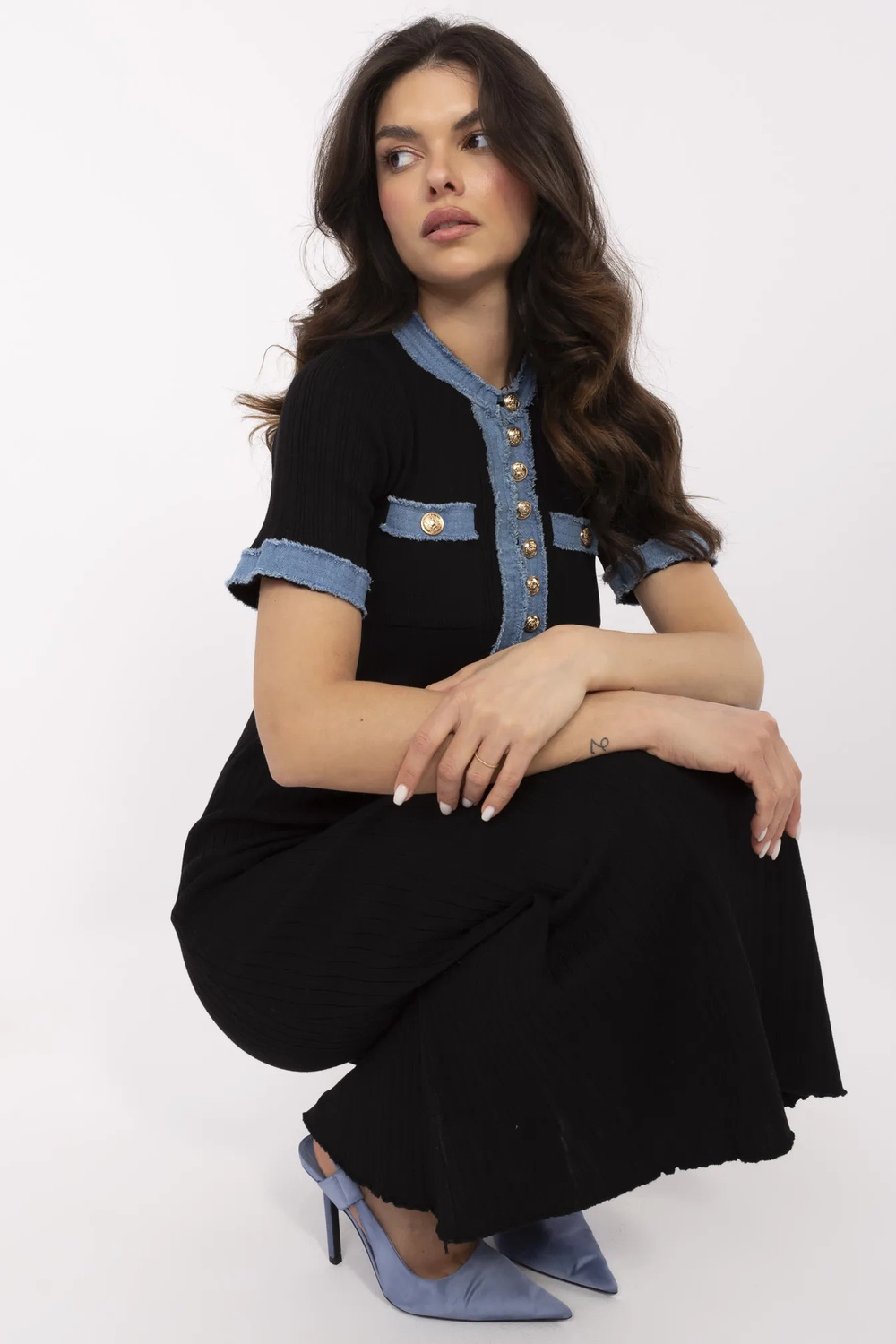 Modele valkā 1. izmēru. Modeļa izmēri: augums 173 cm, krūtis 85 cm, viduklis 62 cm, gurni 95 cm.