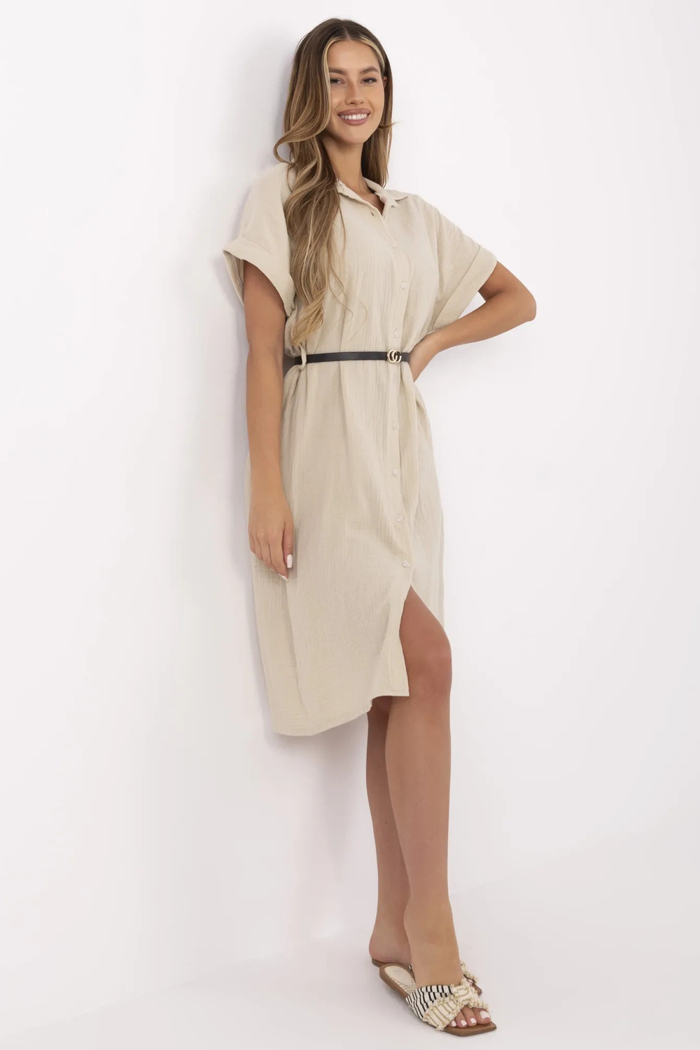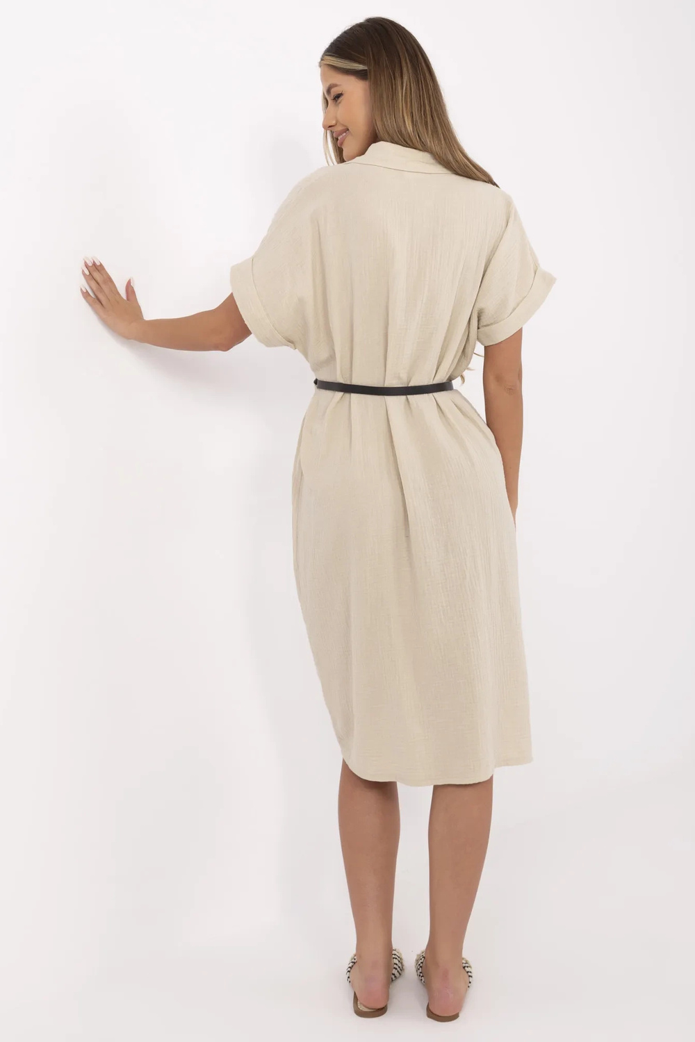 Kleitas izmēri vienā izmērā, mērot plakaniski: platums zem padusēm - 58 cm, piedurkņu garums - 29 cm, vidukļa platums - 59 cm, gurnu platums - 57 cm, kopējais garums - 110 cm.
