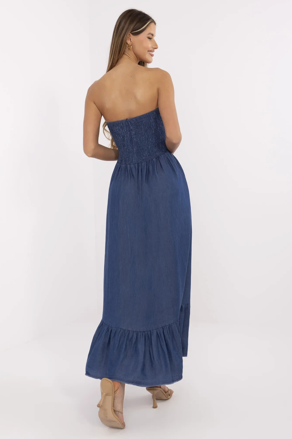 Kleitas izmēri vienā izmērā, mērot plakaniski: platums zem padusēm - 27 cm (plakani), platums zem padusēm - 63 cm (pēc stiepšanas), vidukļa platums - 37 cm (plakani), vidukļa platums - 65 cm (pēc stiepšanas), gurnu platums - 69 cm, kopējais garums - 118 cm.