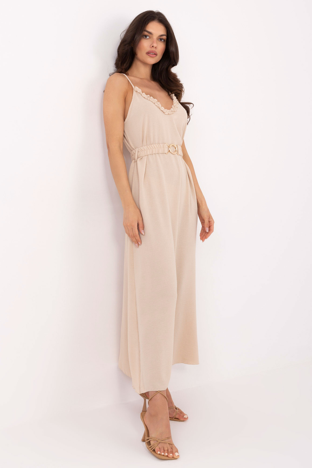 Modelis valkā S izmēru. Modeles izmēri: augums 173 cm, krūšu apkārtmērs 89 cm, vidukļa apkārtmērs 65 cm, gurnu apkārtmērs 91 cm.