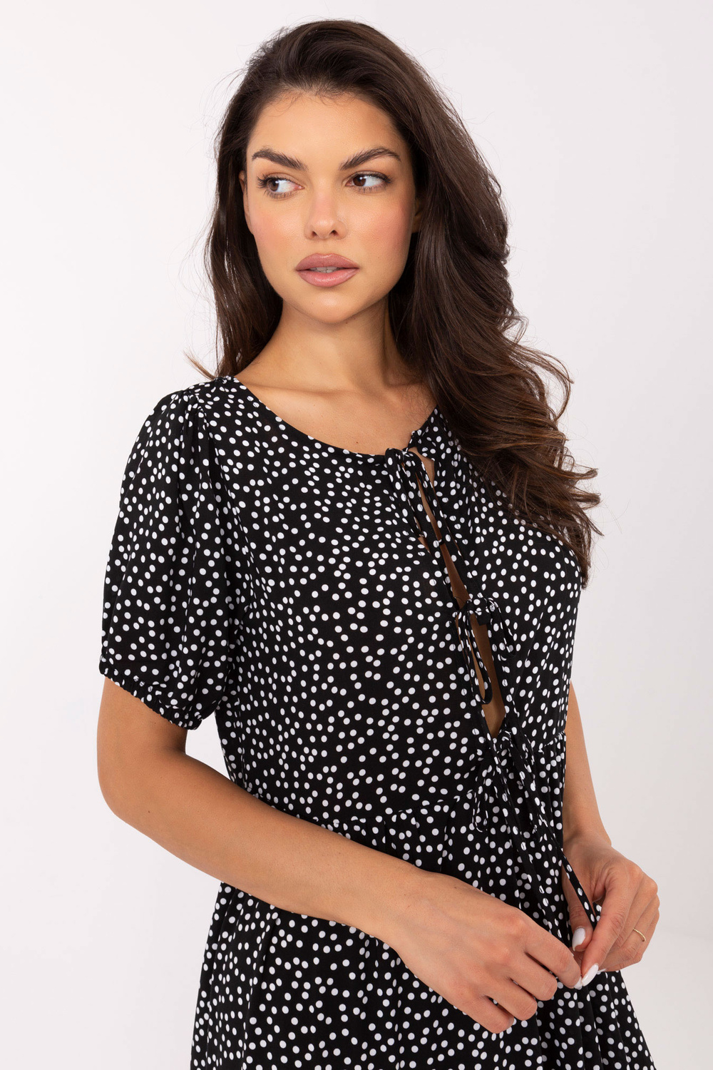 Kleitas izmēri S izmērā: platums zem padusēm - 49 cm, platums jostasvietā - 44 cm, piedurknes garums - 25 cm, platums gurnos - 75 cm, kopējais garums - 98 cm.
