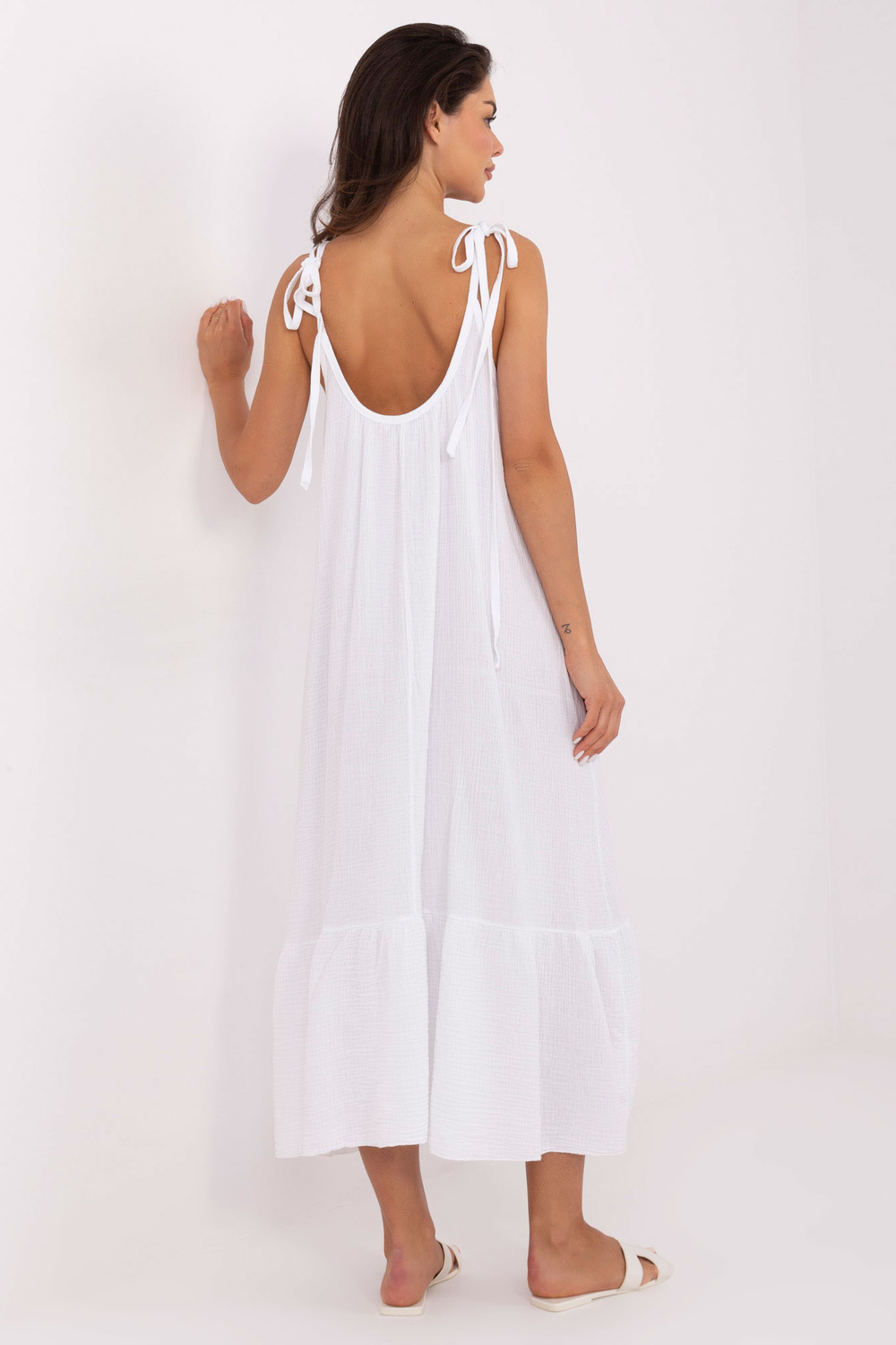 Kleitas izmēri universālajā izmērā: platums zem padusēm - 59 cm, platums jostasvietā - 63 cm, platums gurnos - 66 cm, kopējais garums - 119 cm (bez siksnām), siksnu garums - 82 cm.