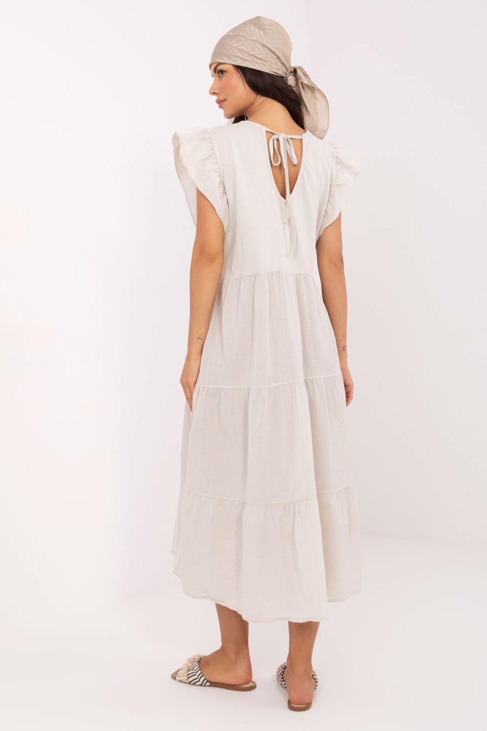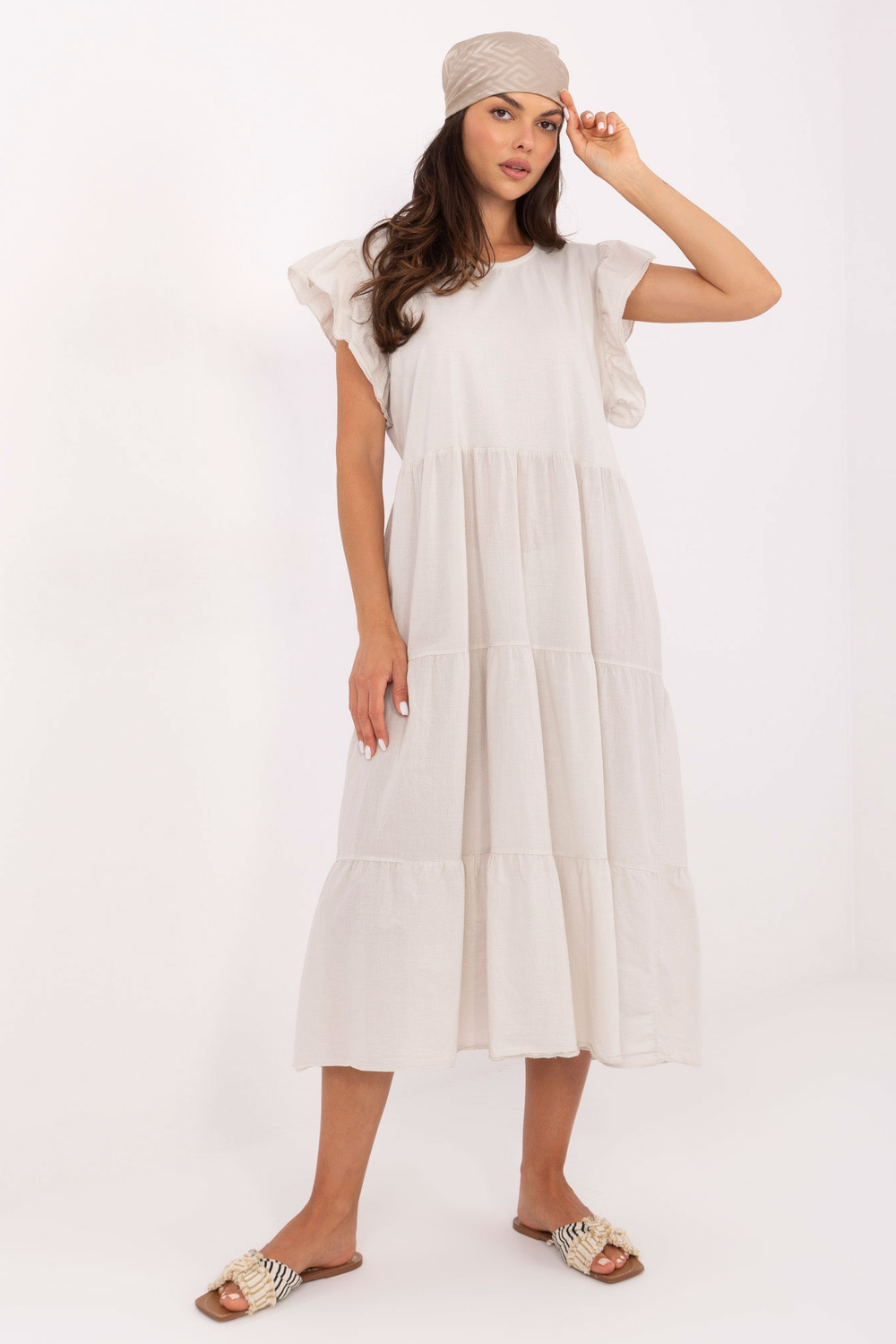 Kleitas izmēri viena izmēra: platums zem padusēm - 55 cm, platums vidukļa zonā - 56 cm, platums gurnu zonā - 68 cm, piedurknes garums - 16 cm, kopējais garums - 119 cm.