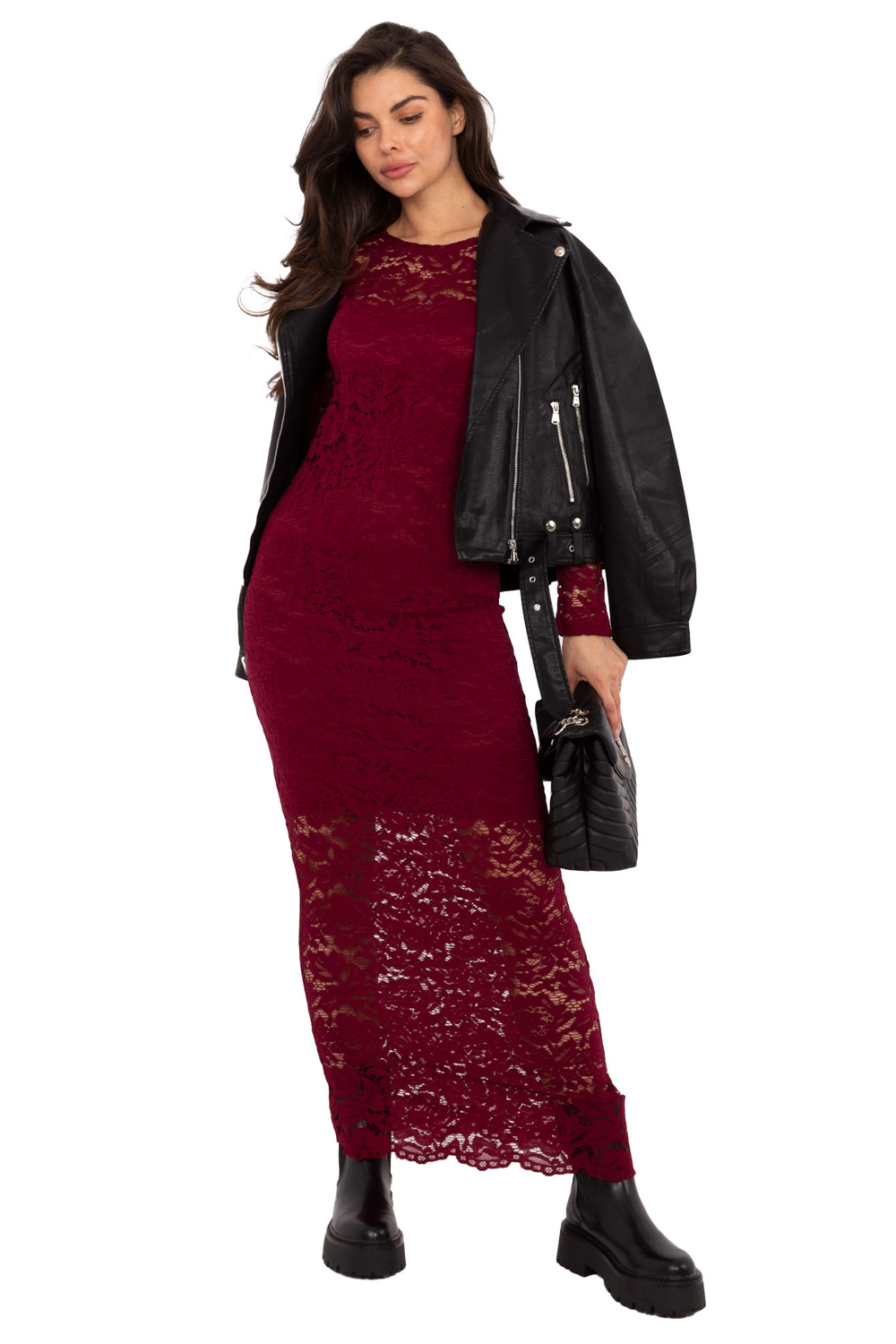 Modelis valkā viena izmēra apģērbu. Modeļa izmēri: augums 173 cm, krūtis 85 cm, viduklis 62 cm, gurni 95 cm