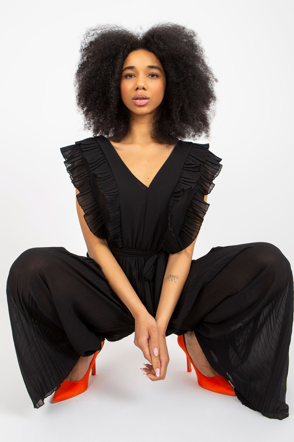 Melns sieviešu kombinezons ar platām kājām OCH BELLA.