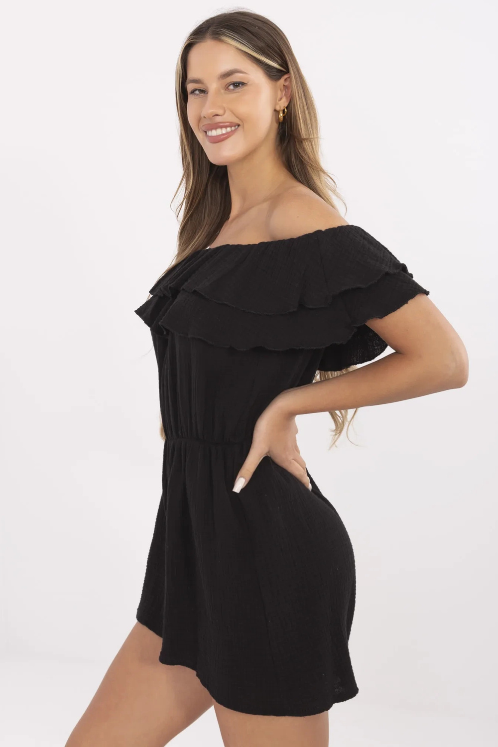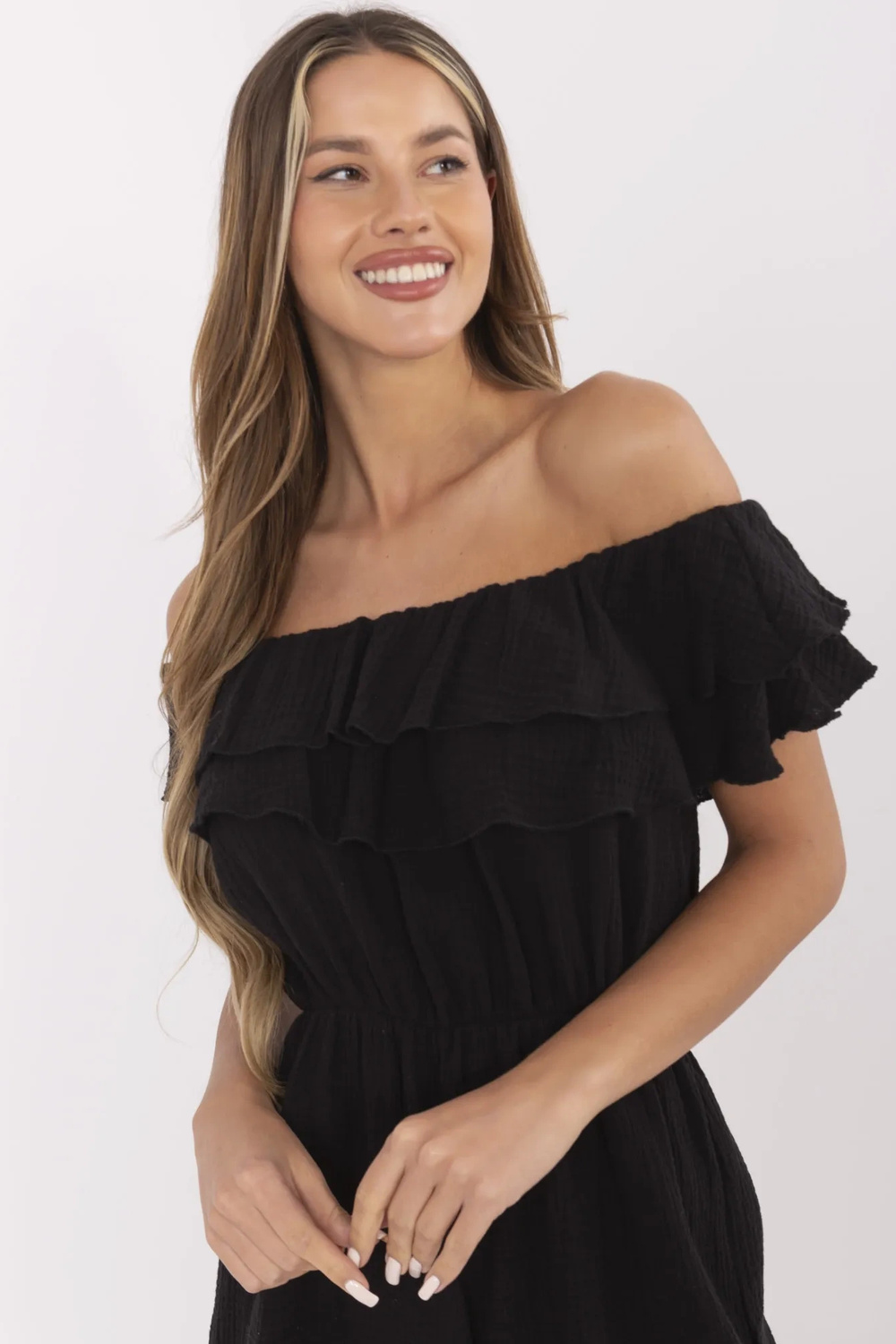 Modelis valkā vienu izmēru. Modeles izmēri: augums 173 cm, krūšu apkārtmērs 89 cm, vidukļa apkārtmērs 65 cm, gurnu apkārtmērs 91 cm.