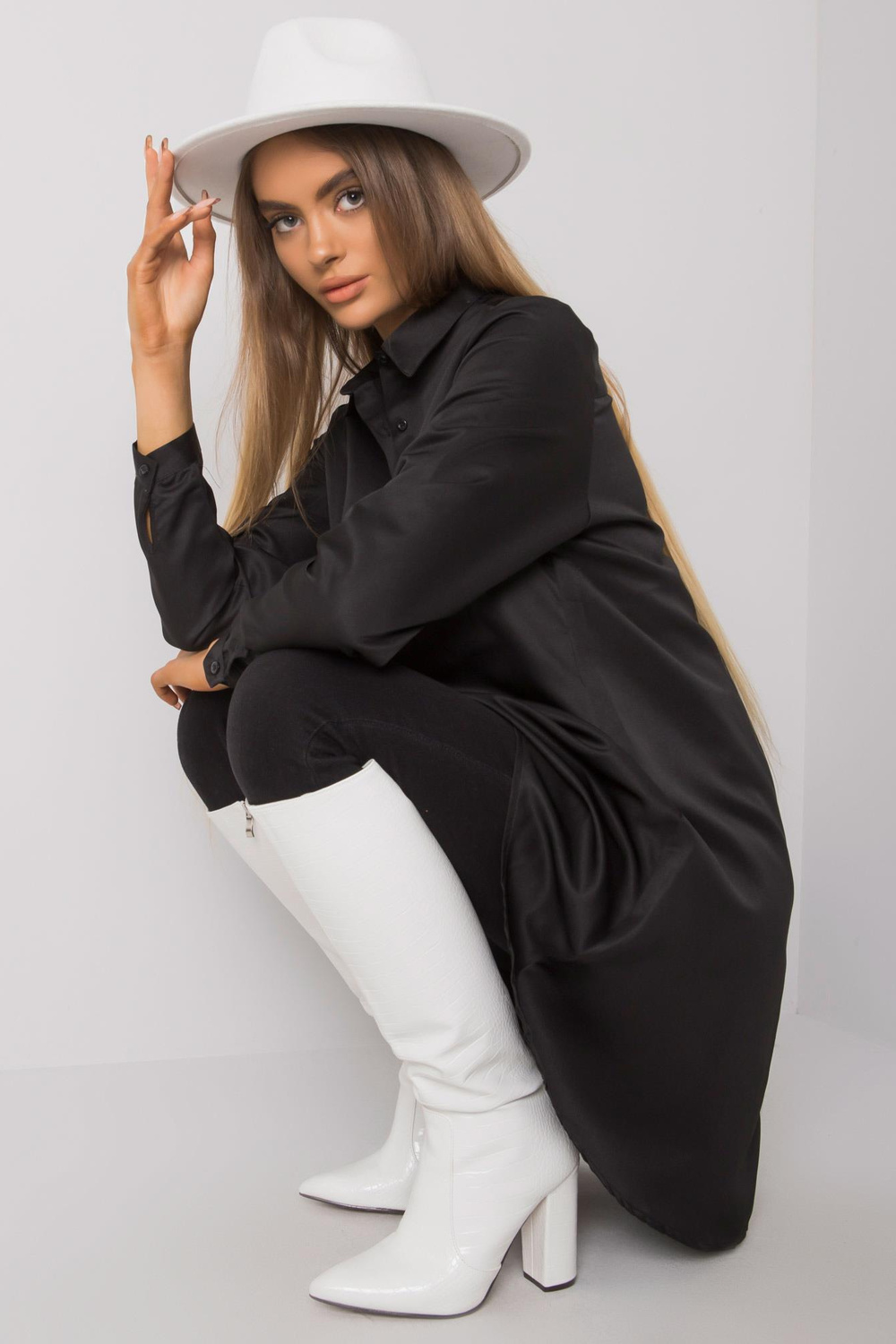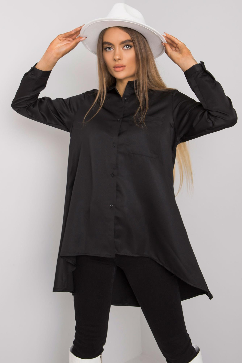 Gilianas melnais asimetrisks krekls.