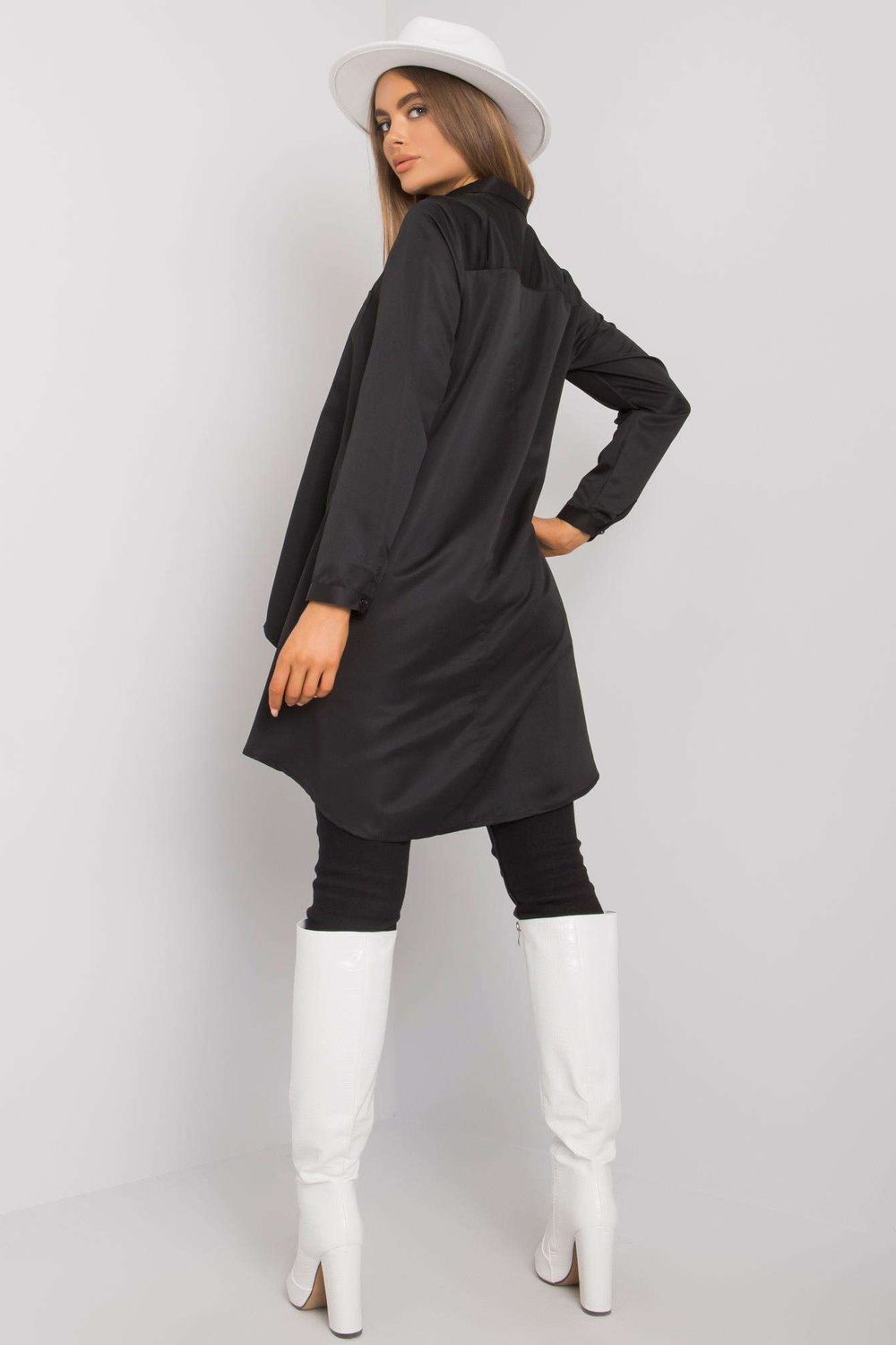Viena izmēra krekla izmēri, mērot plakanu: platums zem padusēm - 51 cm, kopējais garums (priekšpusē) - 68 cm, kopējais garums (aizmugurē) - 90 cm, piedurkņu garums - 55 cm