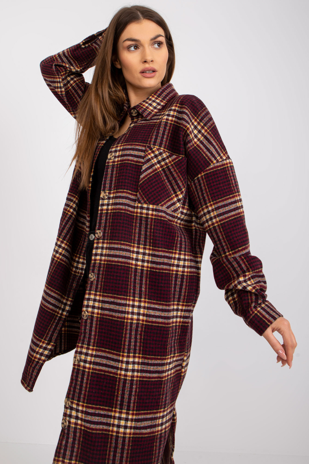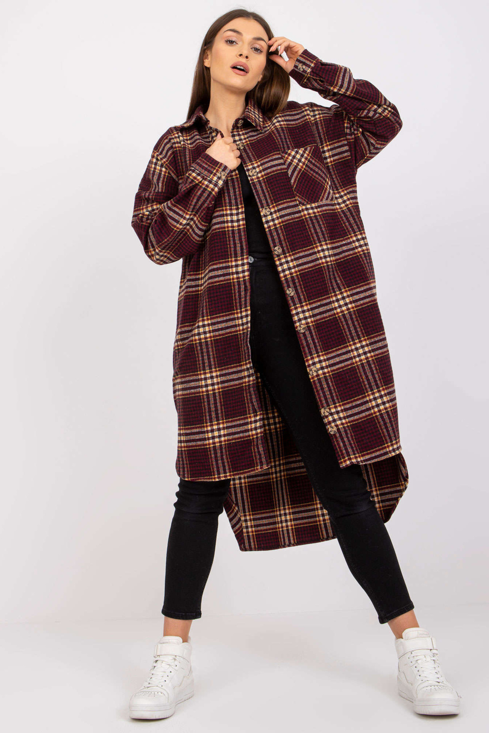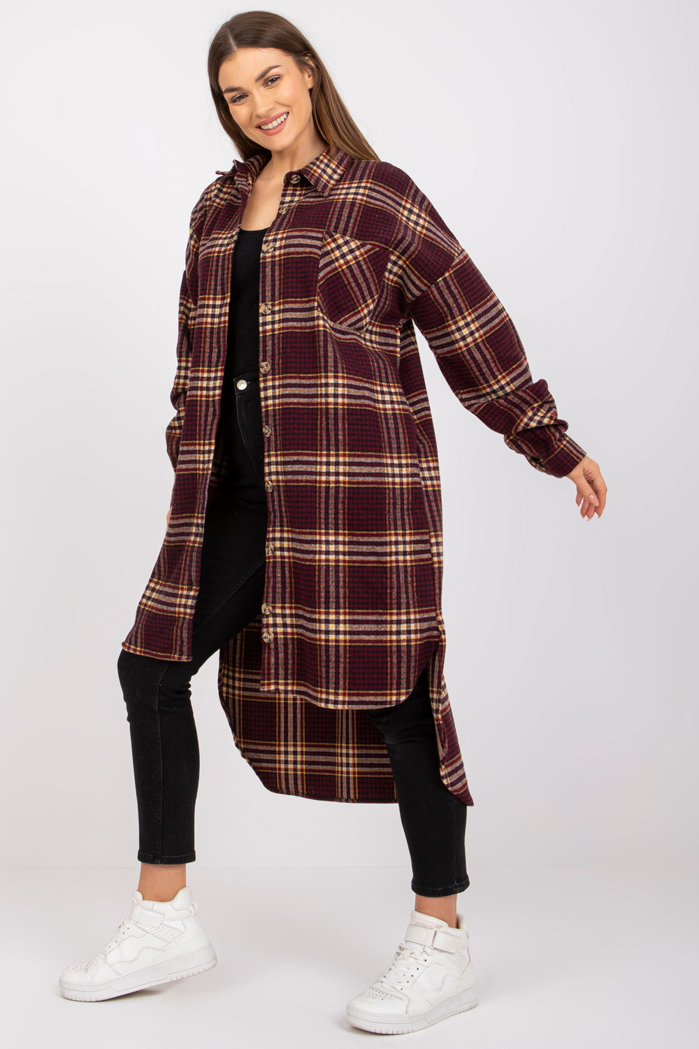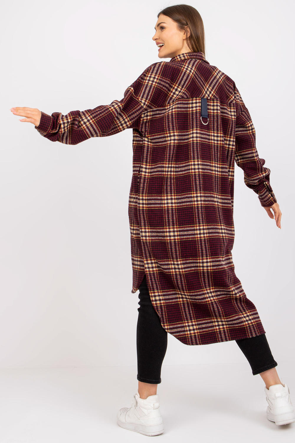 Burgundzeltens, garš rūtains krekls ar garām piedurknēm.