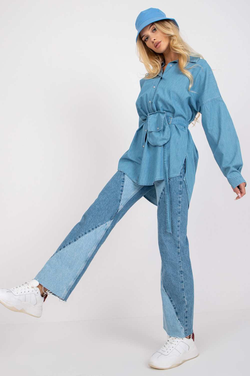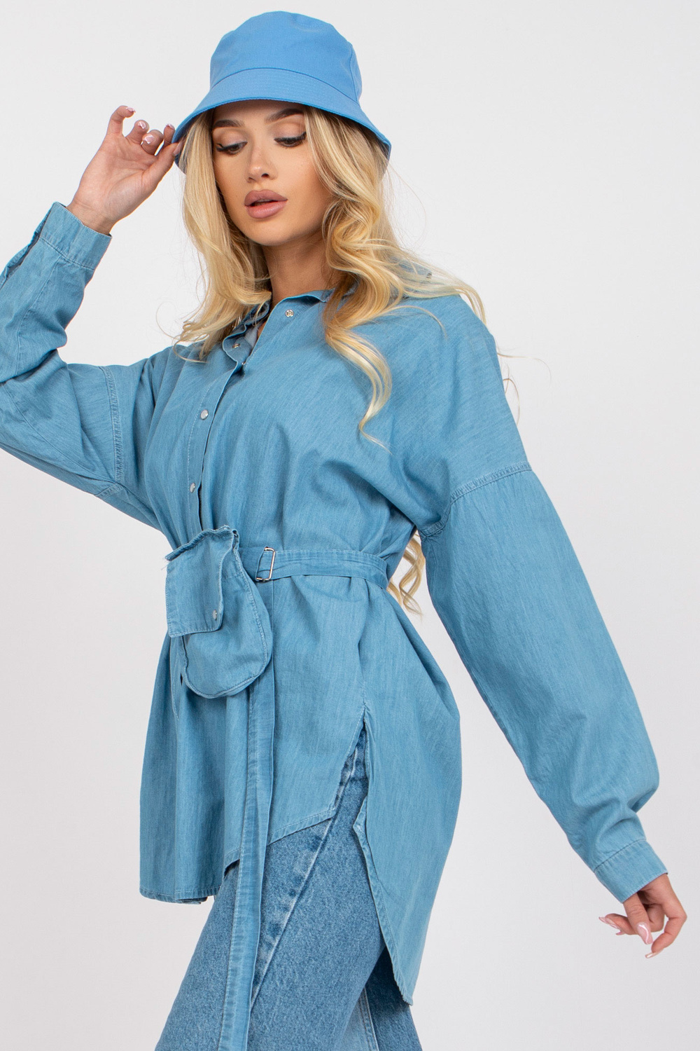 Zils, liela izmēra krekls no kokvilnas RUE PARIS.
