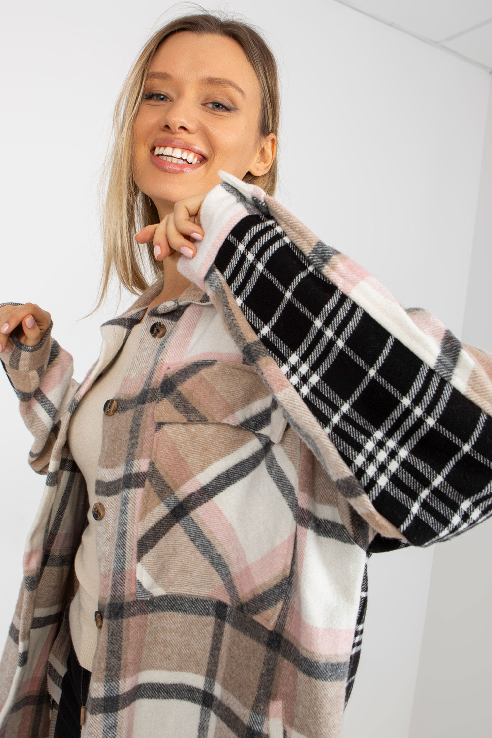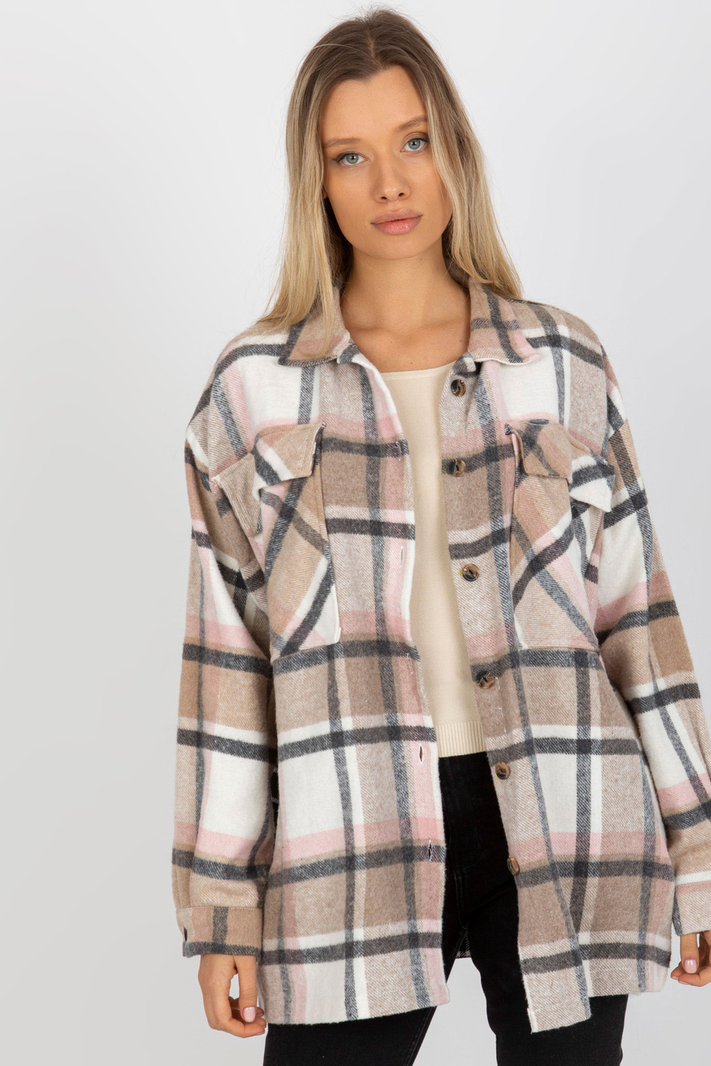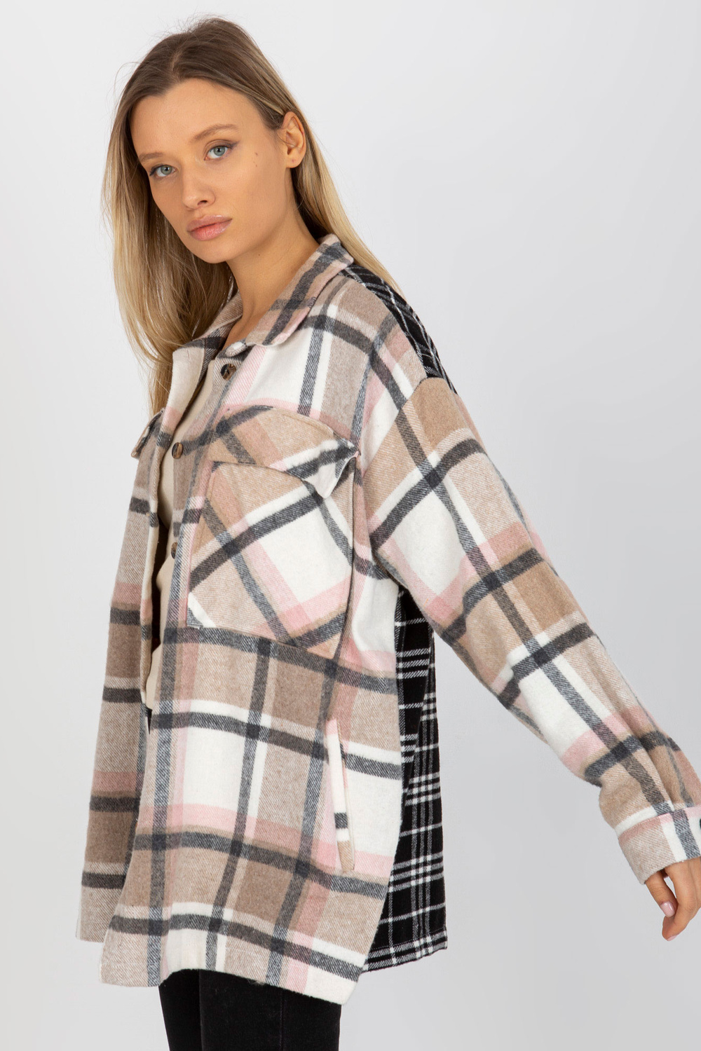 Rūtains krekls ar kabatām un pogas aizdari .