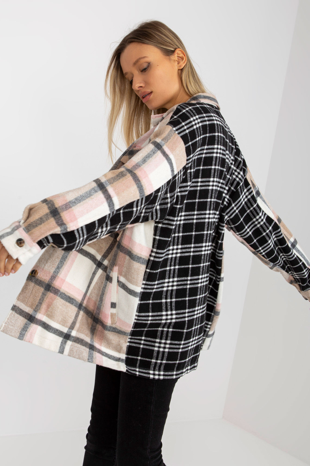 Rūtains krekls ar kabatām un pogu aizdari