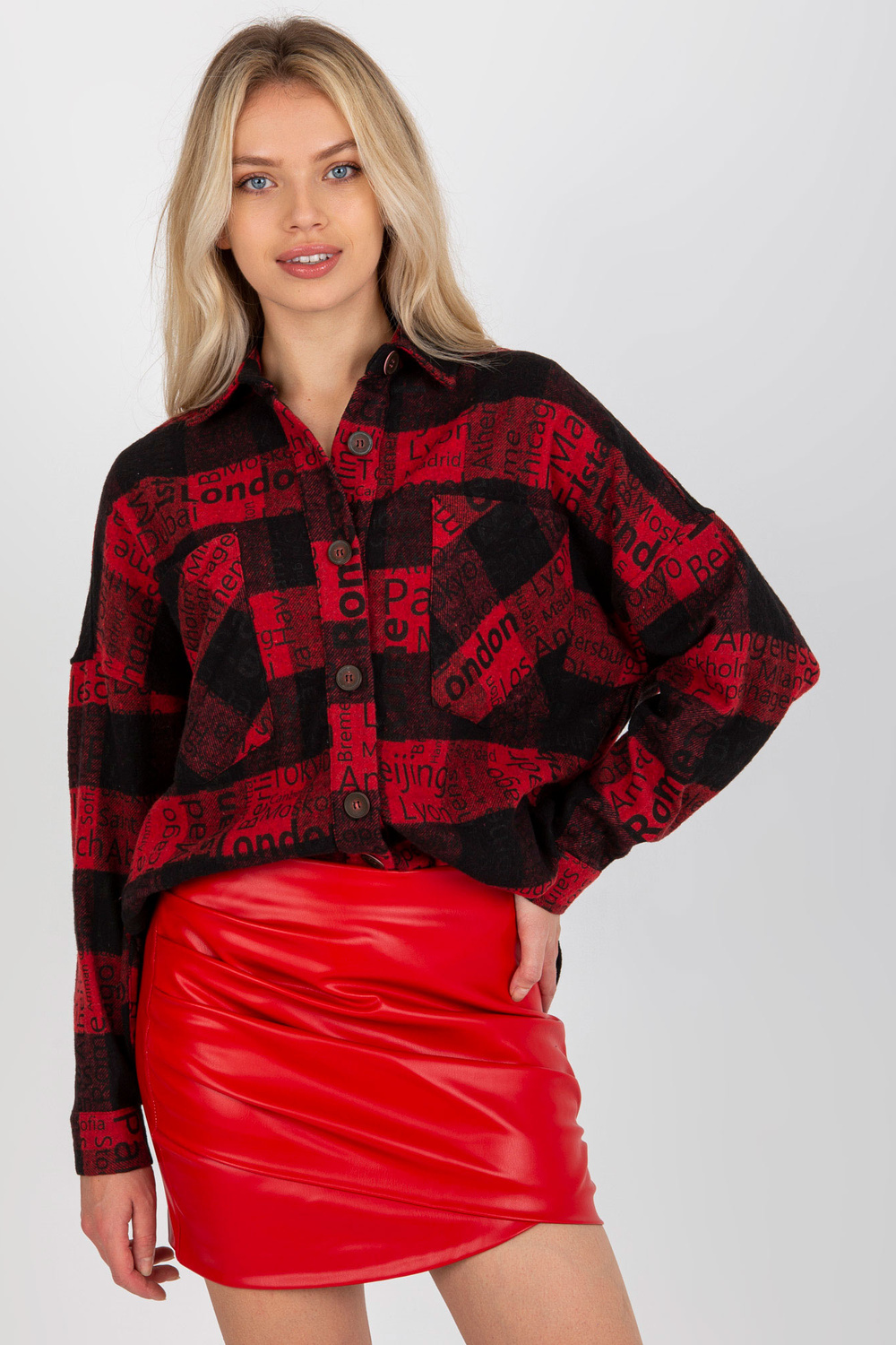 Melns un sarkans rūtains virskrekls ar apdruku strong> .