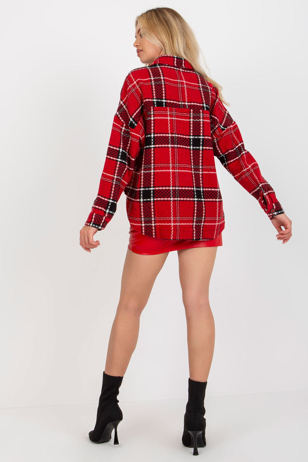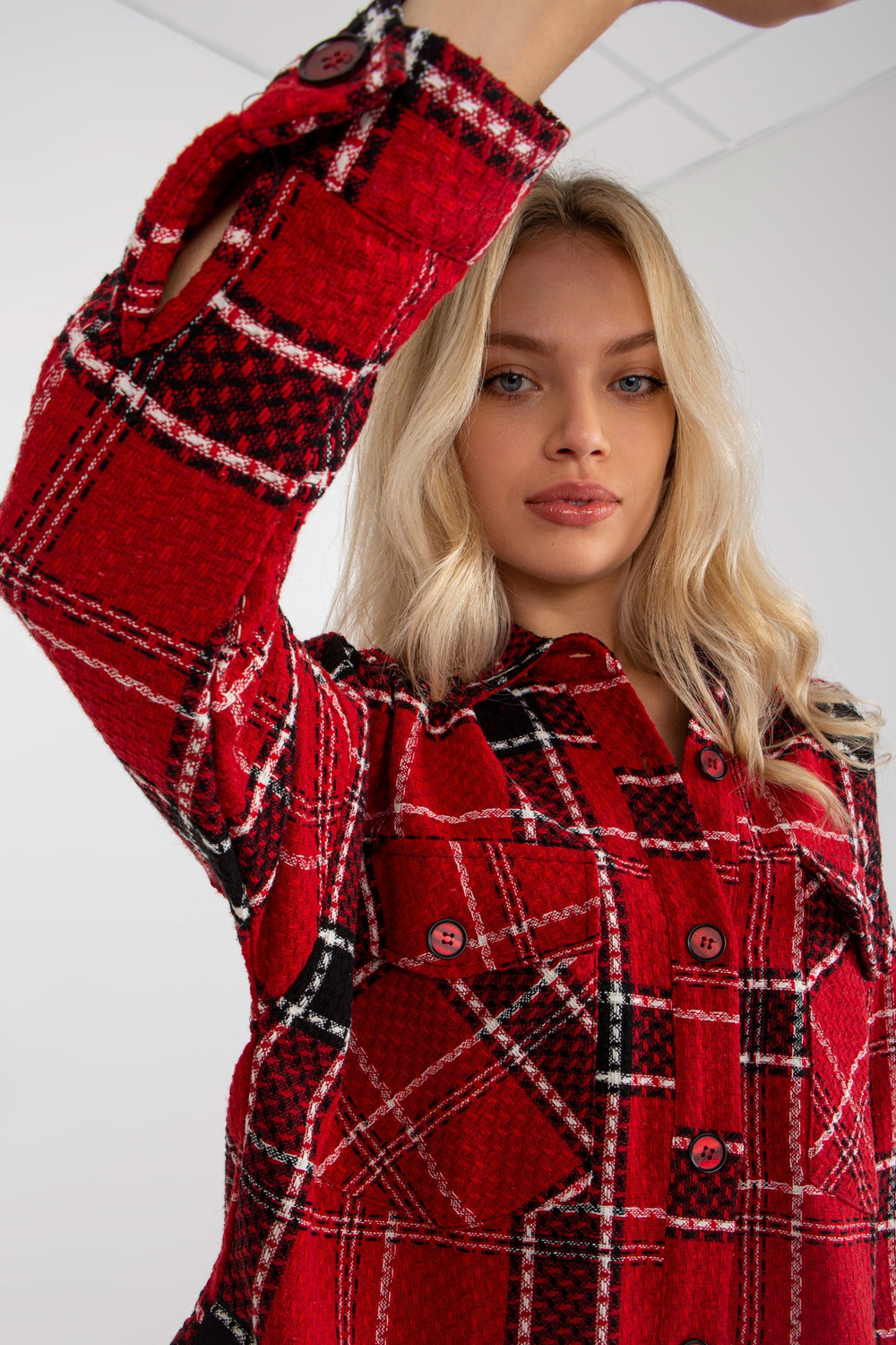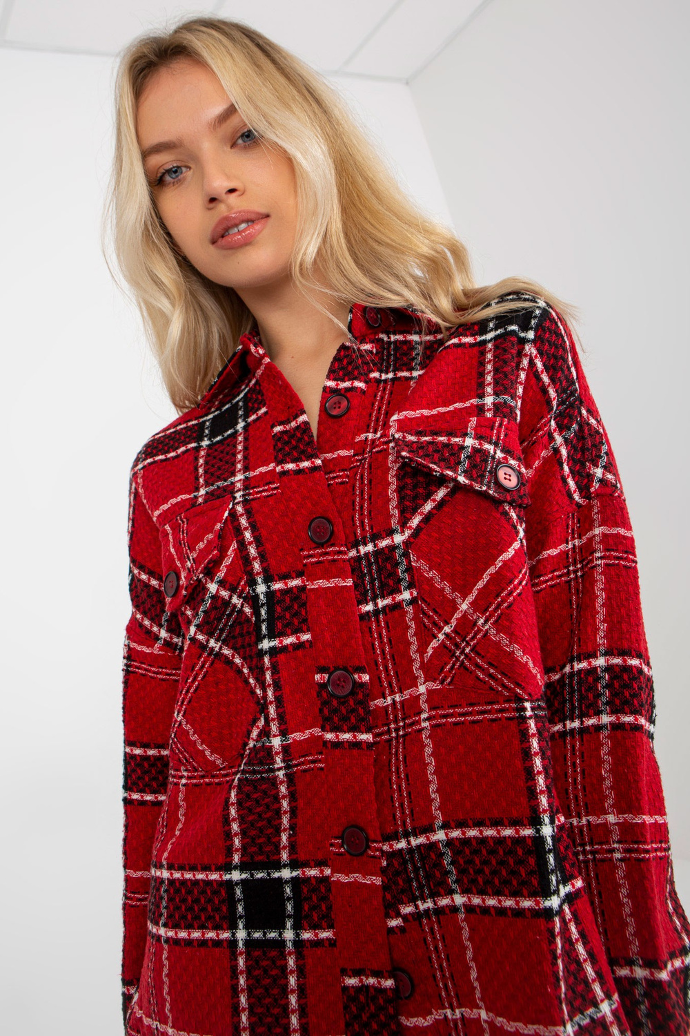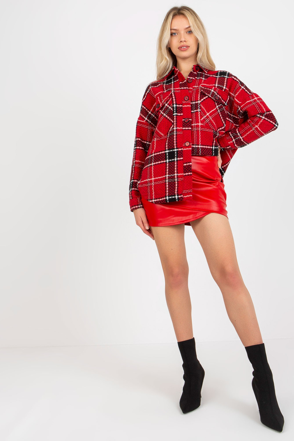 Sarkanrūtains virskrekls ar pogas aizdari .