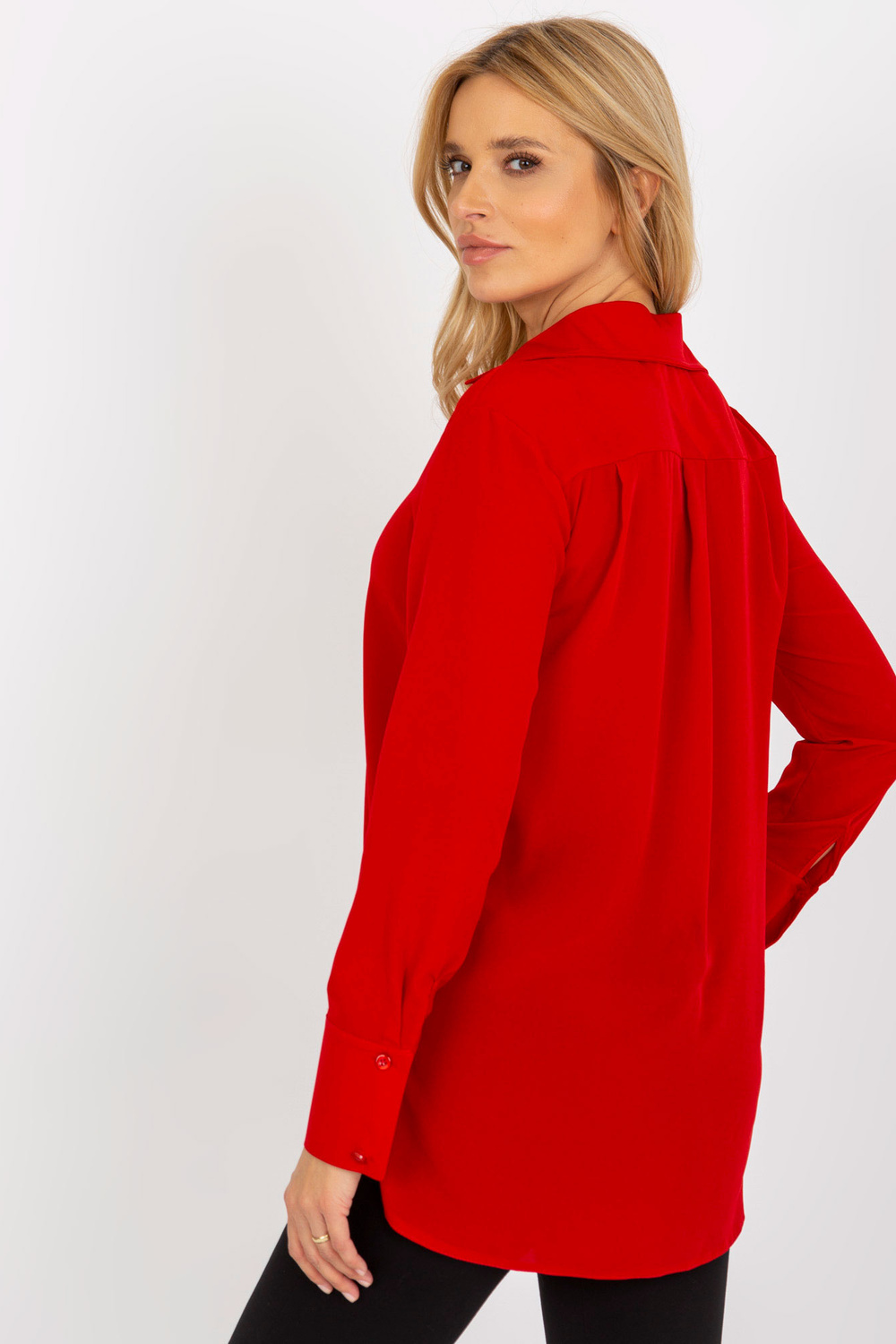 Sarkans elegants klasisks krekls ar garām piedurknēm.