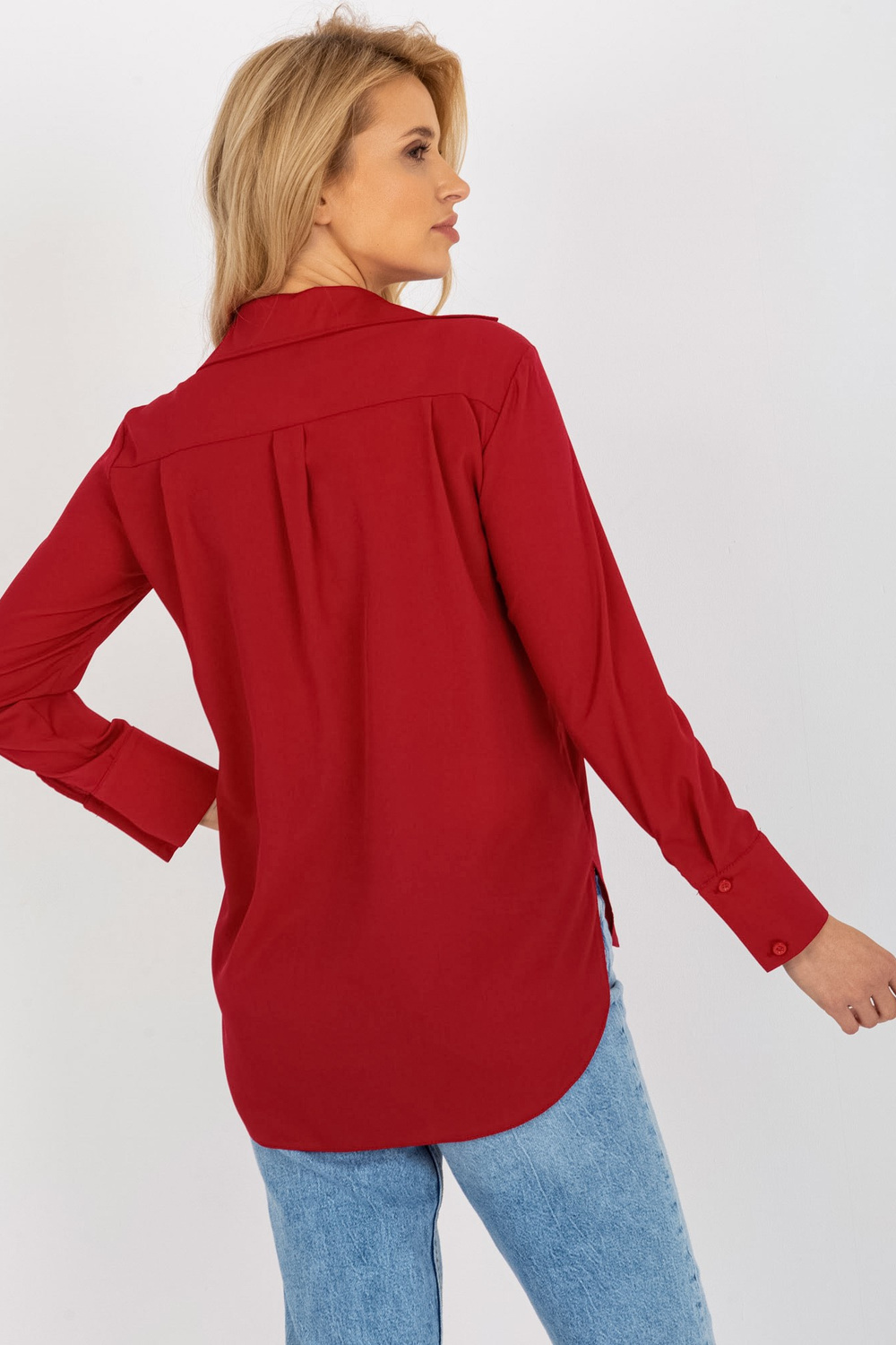 Burgundijas klasisks sieviešu krekls ar apkakli.
