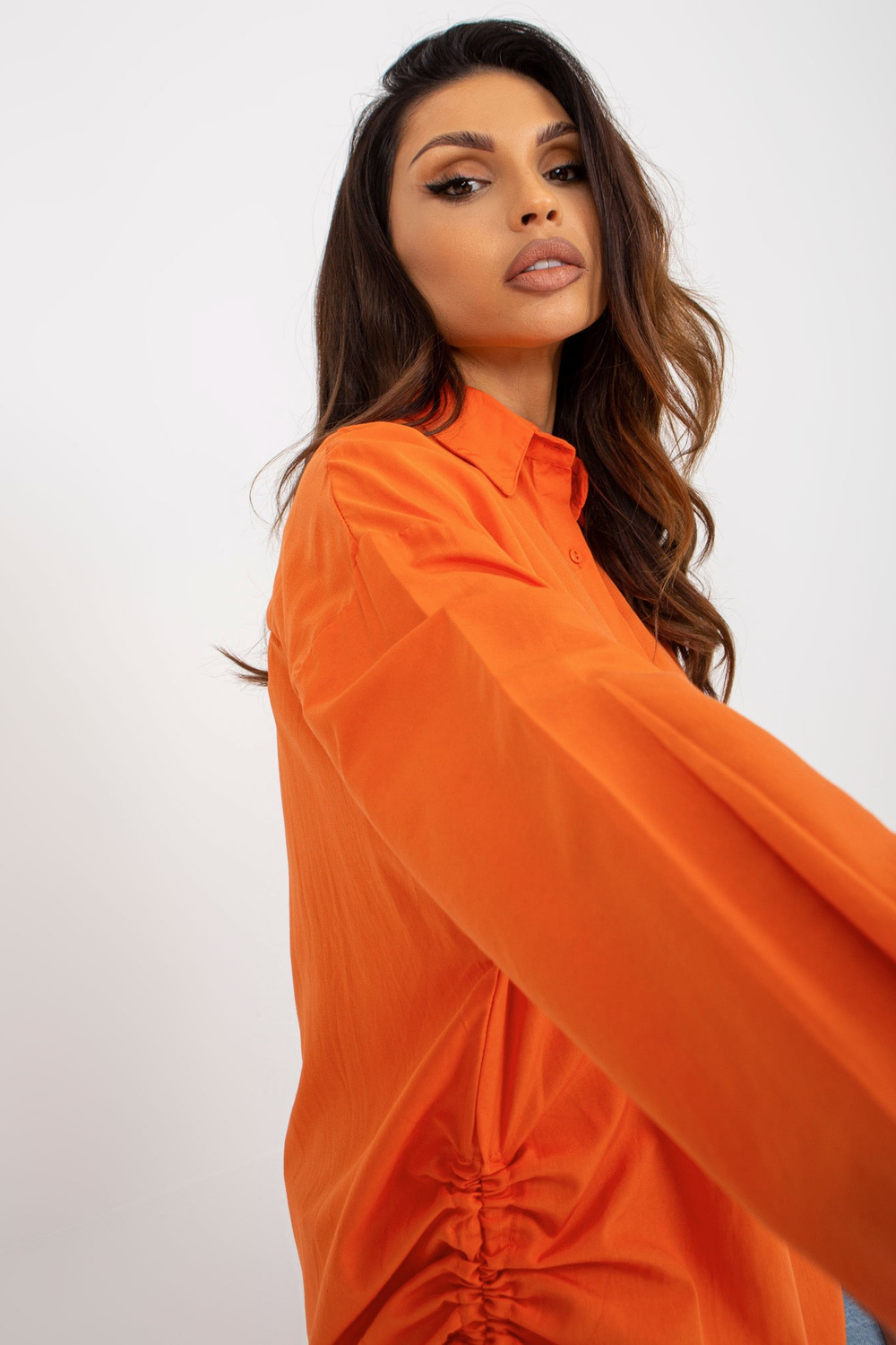 Oranžs brīvs klasisks krekls ar rievojumiem.