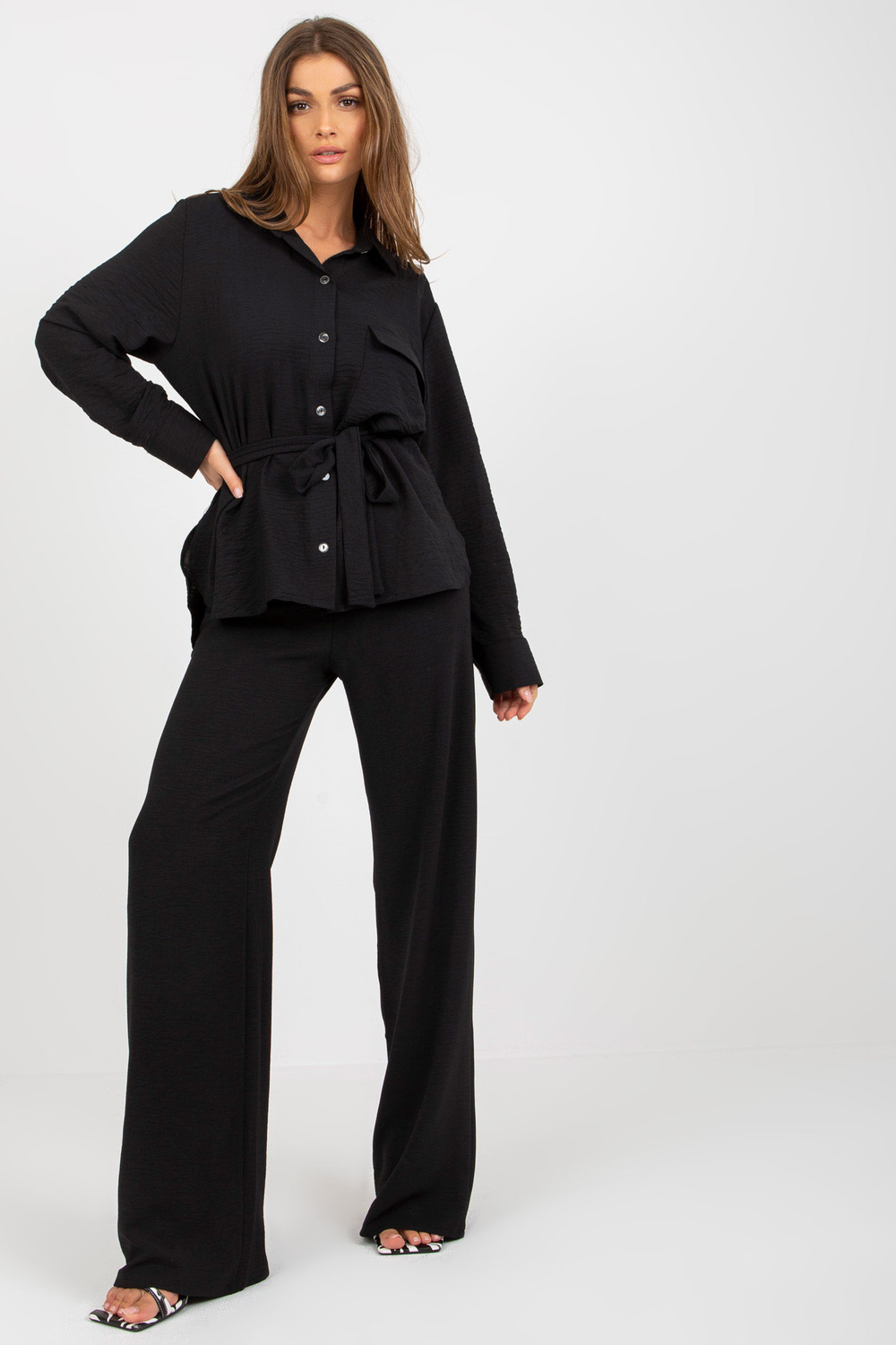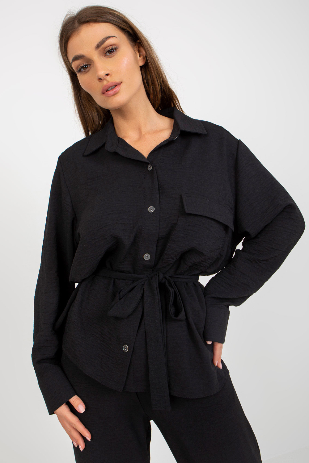 Melni lielizmēra jakas ar jostu.