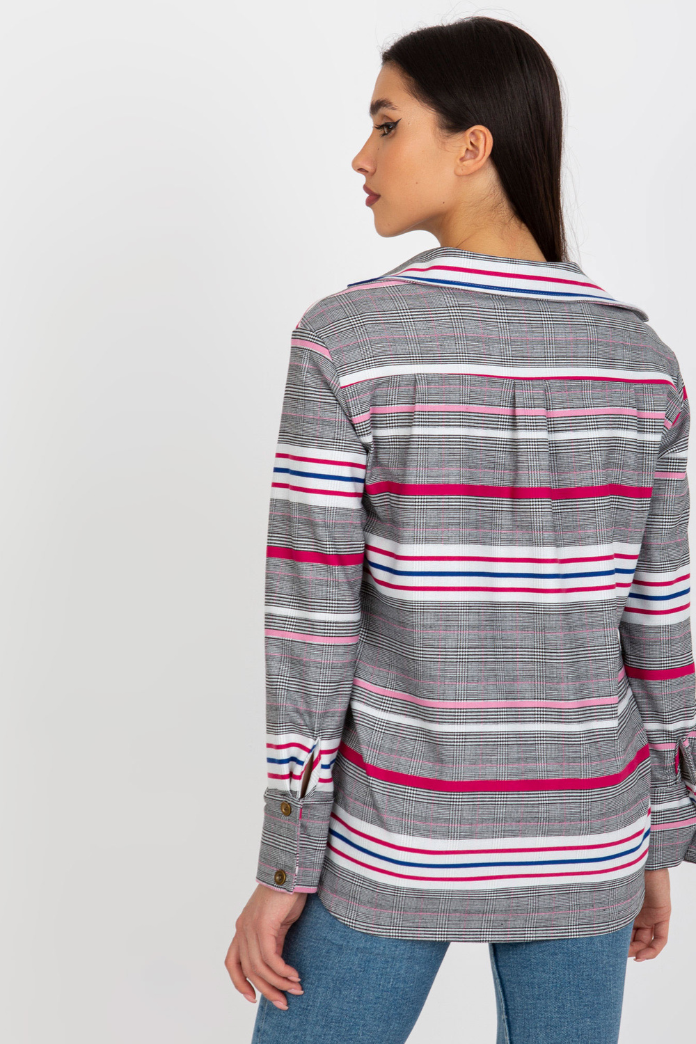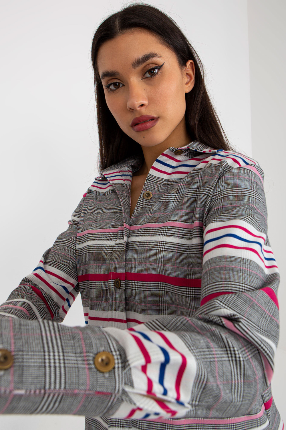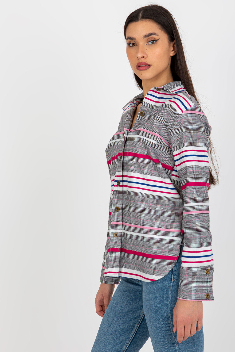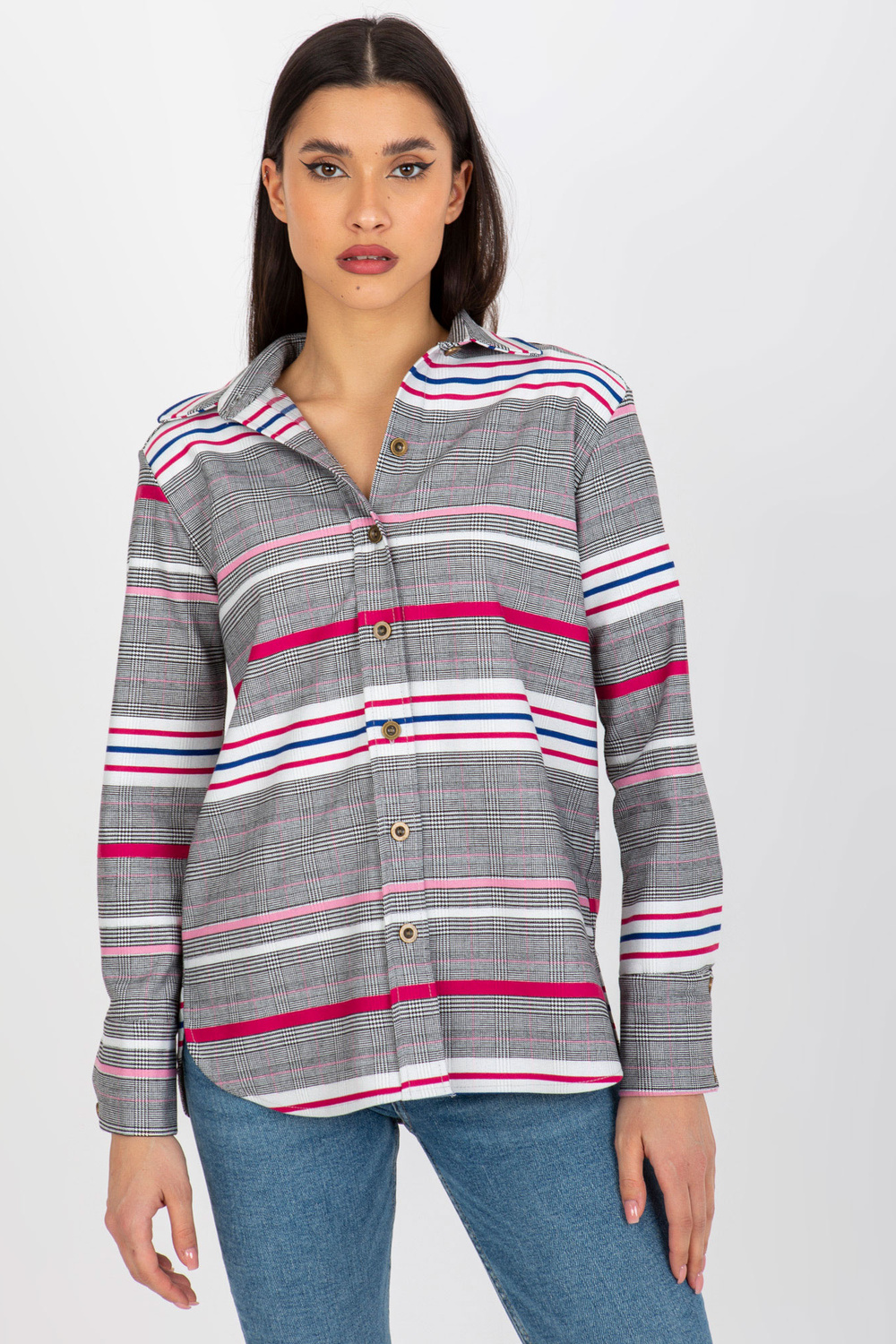 Balts un rozā sieviešu rūtains un svītrains krekls
