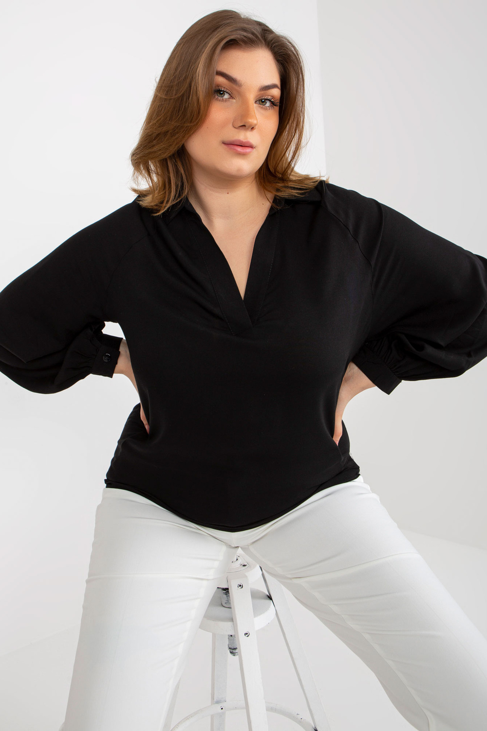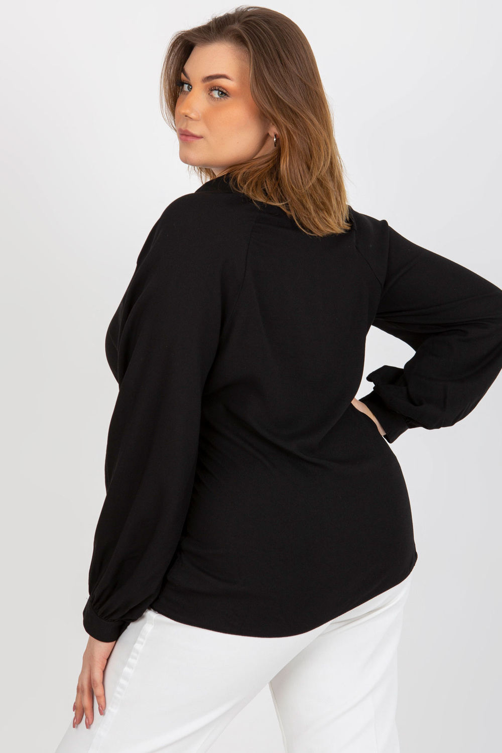 Blūzes izmēri M/L izmērā, mērot plakaniski: platums zem padusēm - 61 cm, piedurknes garums - 65 cm, kopējais garums (priekšpusē) - 65 cm, kop. garums (mugura) - 72 cm.