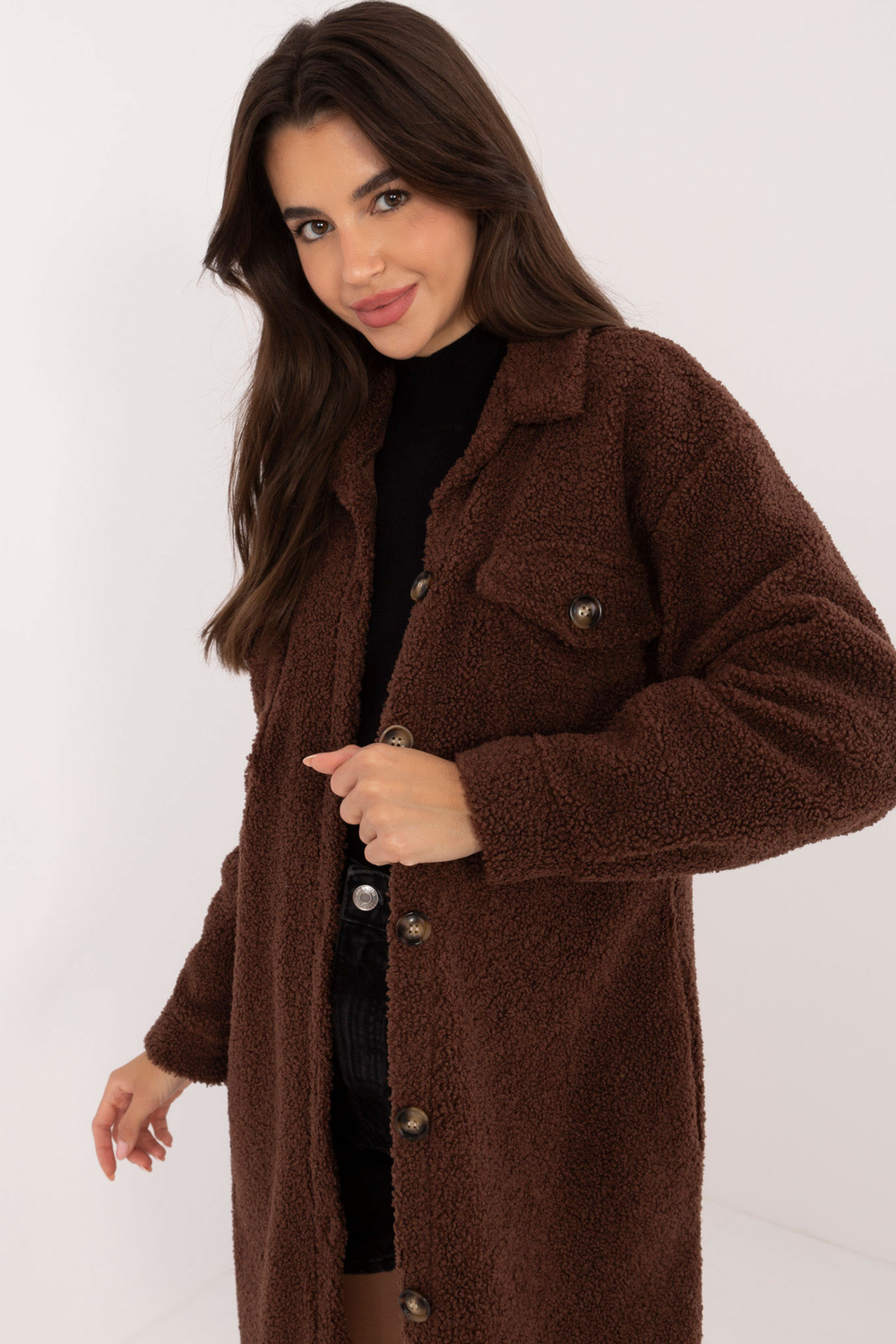 Modele valkā viena izmēra izmēru. Modeles izmēri: augums 172 cm, krūtis 88 cm, viduklis 63 cm, gurni 92 cm.