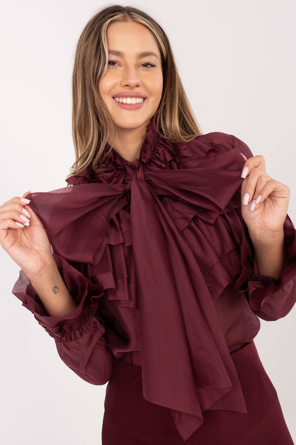 Modelis valkā viena izmēra apģērbu. Modeļa izmēri: augums 176 cm, krūtis 90 cm, viduklis 62 cm, gurni 94 cm.