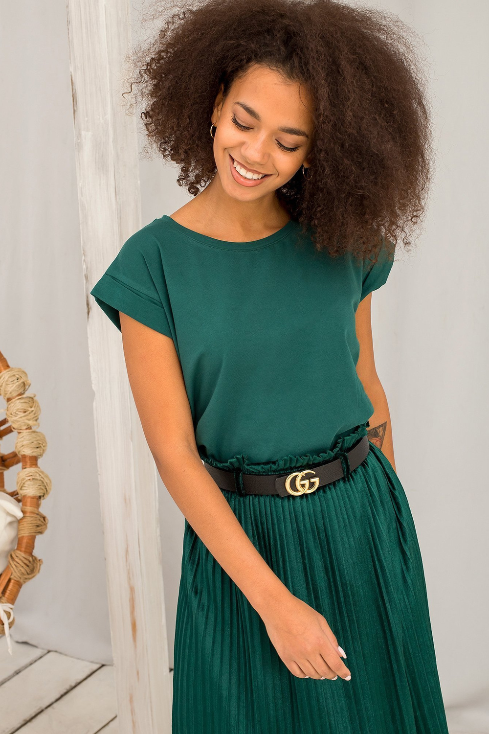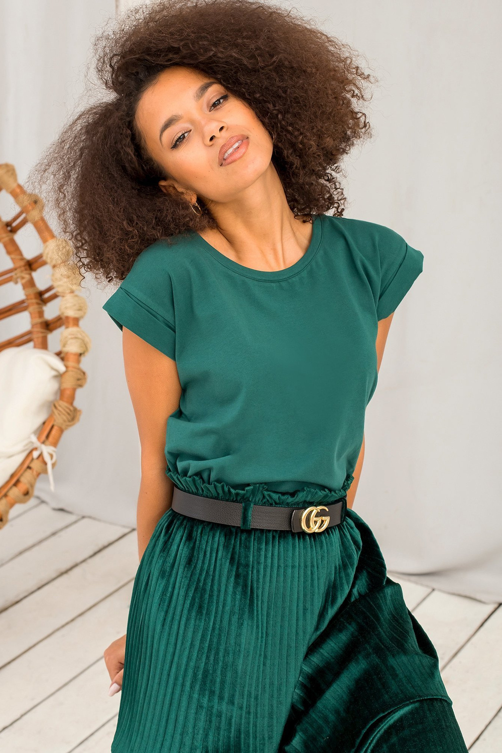 Darkgreen Revolution T-krekls . Kokvilnas T-krekls bez rakstiem noteikti ieņem nozīmīgu vietu daudzu minimālisma stila cienītāju garderobē. Mūsu apģērbi no pamata kolekcijas ir īpaši augstas kvalitātes un nodrošina daudzpusīgu izskatu kombinācijā ar citiem garderobes priekšmetiem. Šāds sieviešu t-krekls sniedz praktiski bezgalīgas iespējas to apvienot sportiskā vai sievišķīgākā klimatā saglabātā izskatā. Tam ir klasisks apaļš kakla izgriezums, neformāls piegriezums un moderni uzlocīti piedurkņu gali, kas piešķir tai šarmu. Krekls ir izgatavots no elpojošas kokvilnas un moderna polimēra kombinācijas, padarot to vienlaikus gaisīgu un patīkamu ķermenim. Šāds sieviešu t-krekls lieliski iederas siluetā, turklāt ir ļoti ērti valkāt. Apkopojiet visas šī modeļa krāsas!
