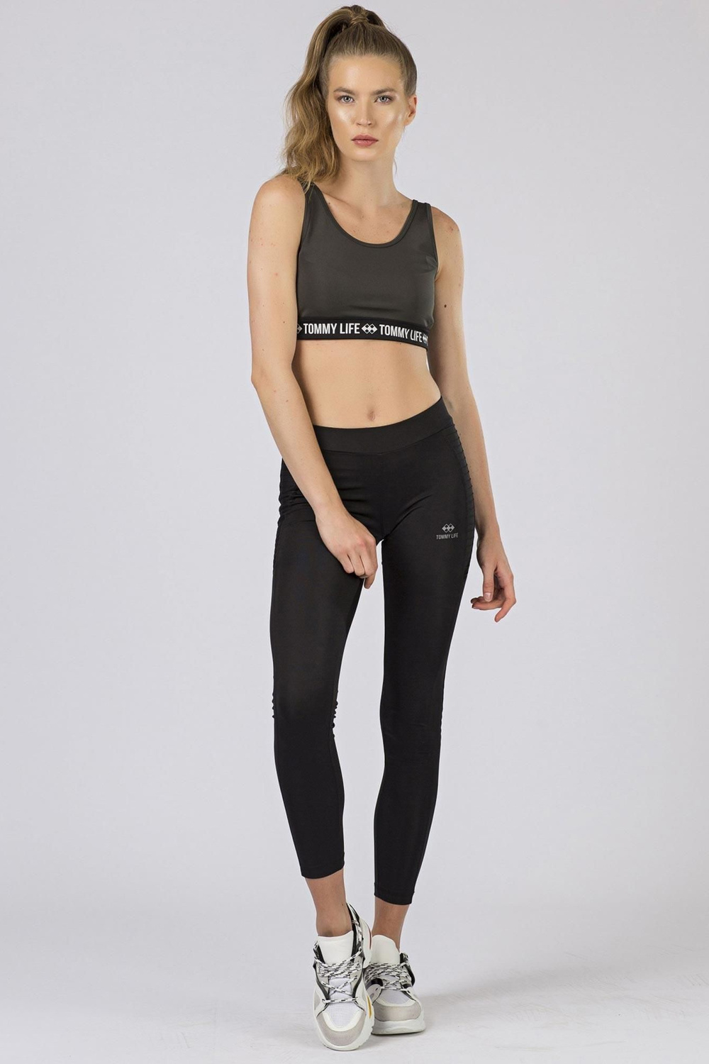 TOMMYLIFE Khaki sporta tops ir moderna izvēle, kas jums noteikti nebūs jānožēlo! Uzziniet, cik stilīgi varat izskatīties skrienot, trenažieru zālē vai fitnesa nodarbībās. Izmantojiet iespējas, ko sniedz iepirkšanās tiešsaistē, un izvēlieties sporta topus no TOMMY LIFE līnijas. Šis stilīgā toņa modelis darbosies pat intensīvas slodzes laikā. Lieliska triecienu absorbcija un saglabā krūtis, pateicoties augstas kvalitātes materiālam. Izvēlieties legingus vai šortus un iekarojiet sportisko pasauli modernā stilā!