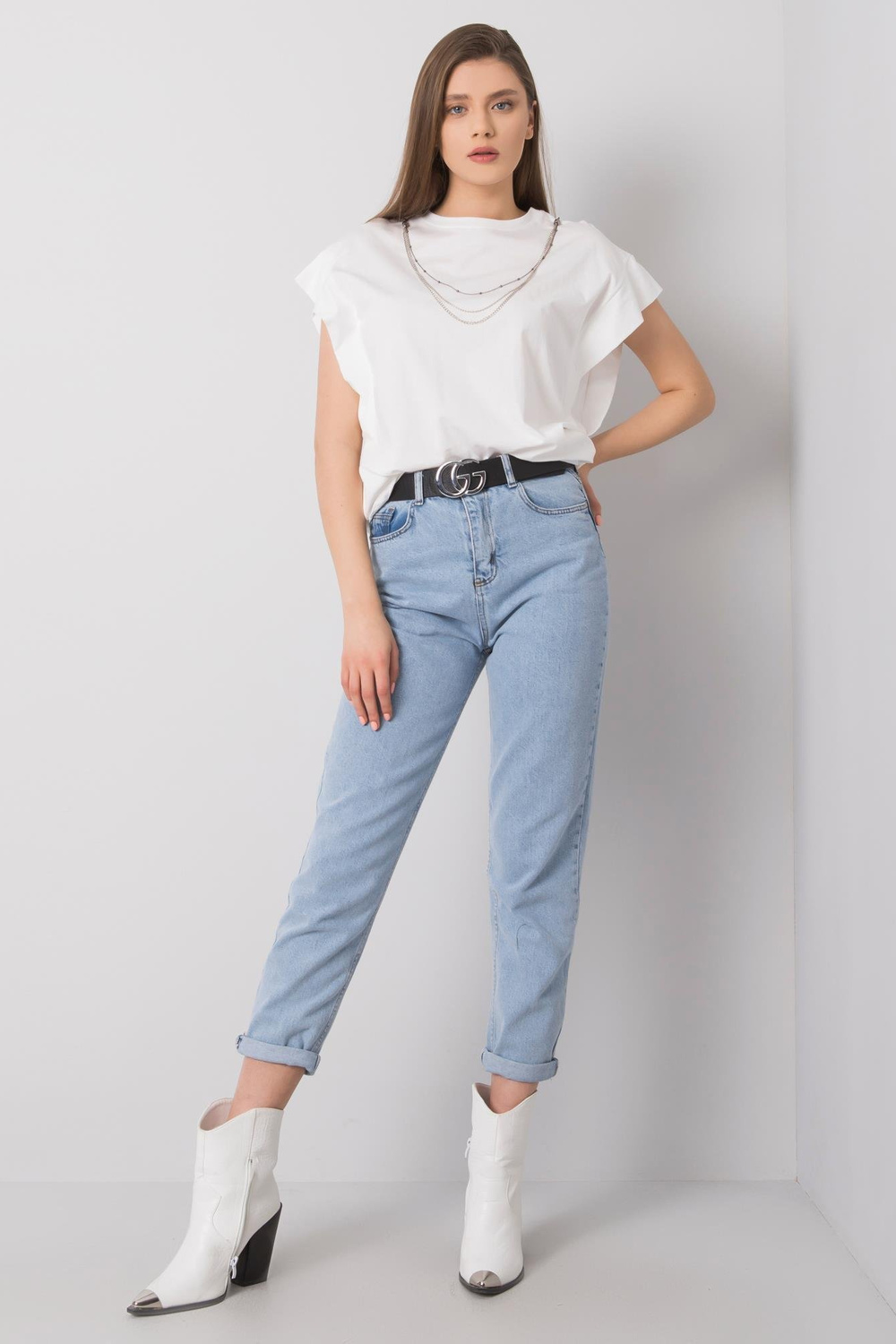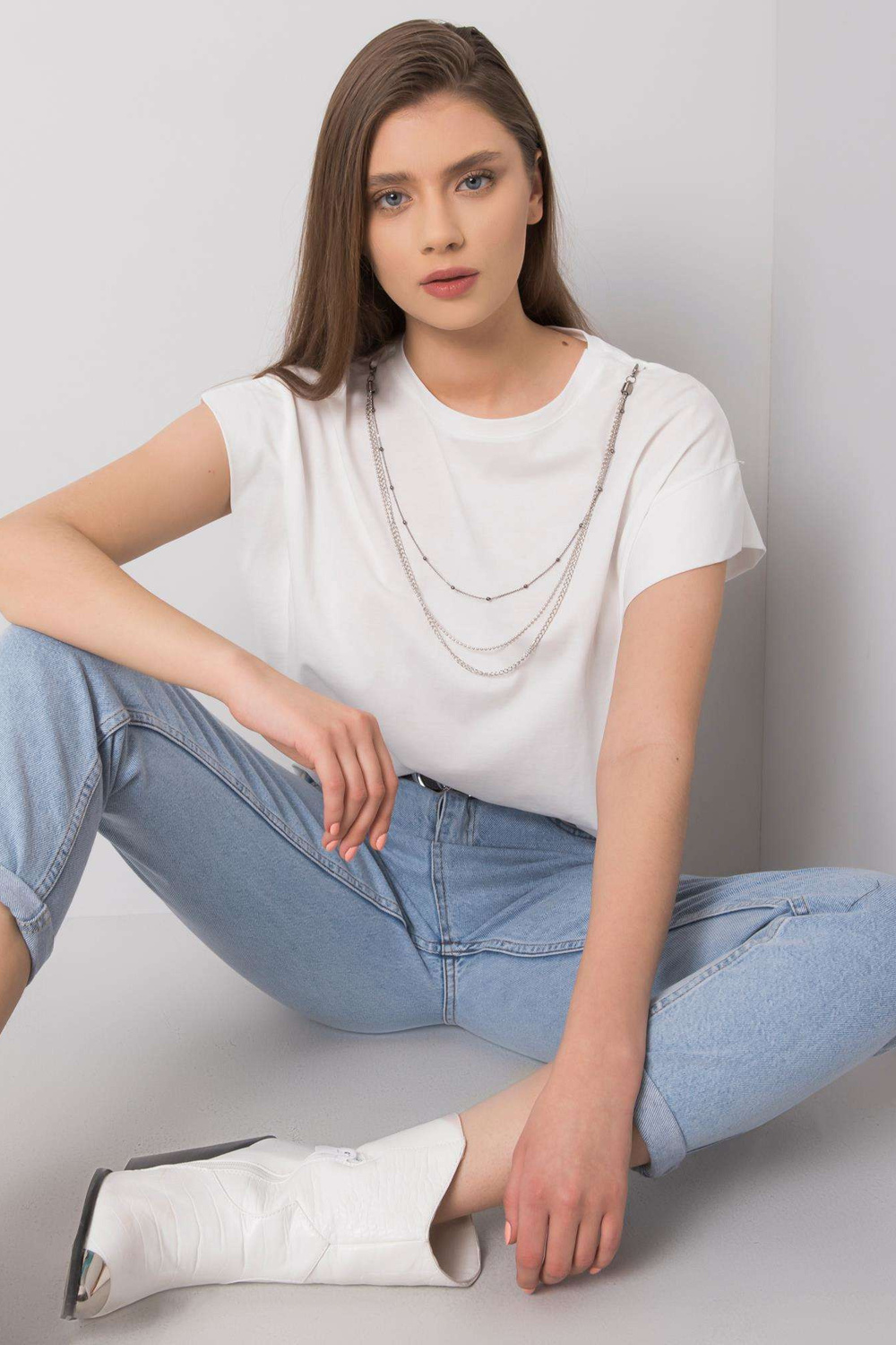 Balts T-krekls ar kaklarotu Arianna RUE PARIS< /strong> .