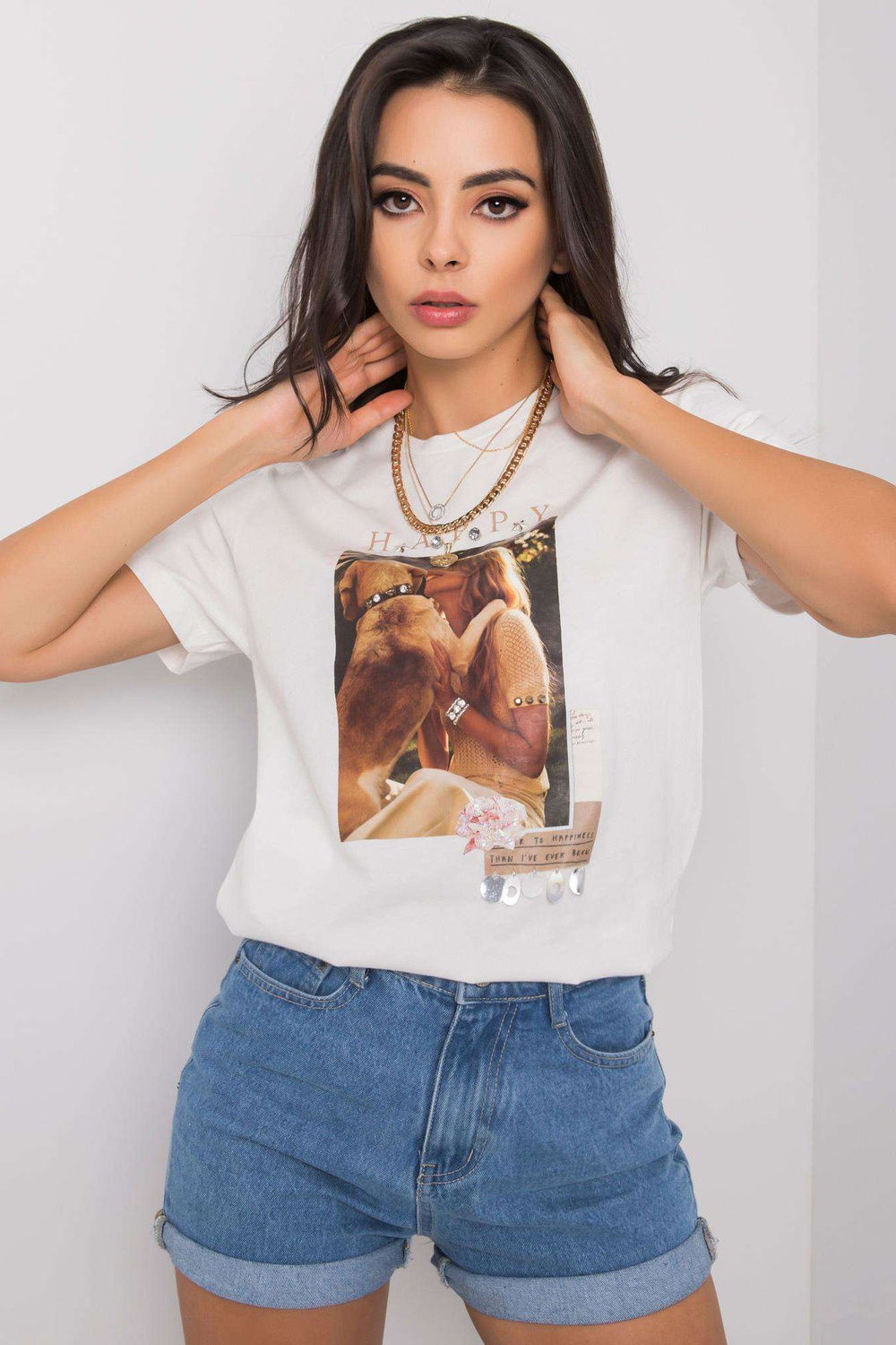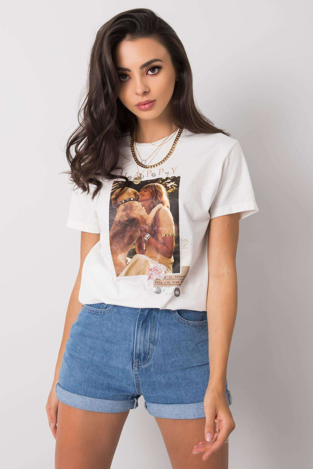 Balts T-krekls ar Rozālijas aplikāciju. materiāla sastāvs: 100% kokvilna, mazgāšana ar rokām: mazgāšana ar rokām Modelis valkā S izmēru. Modeļa izmēri: augums 175 cm, krūtis 84 cm, viduklis 61 cm, gurni 91 cm. S izmēra T-krekla izmēri plakanā formā: paduses platums -