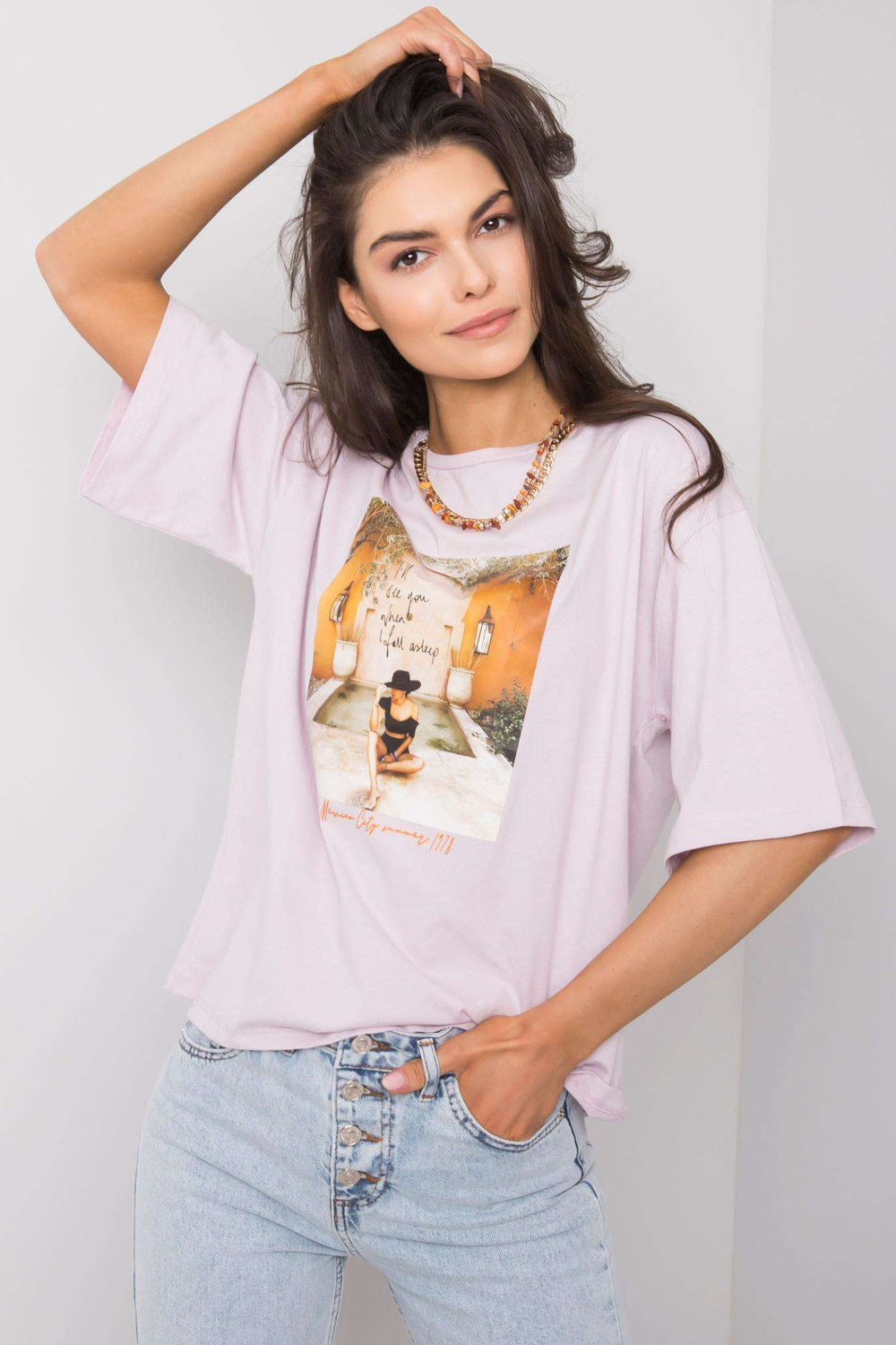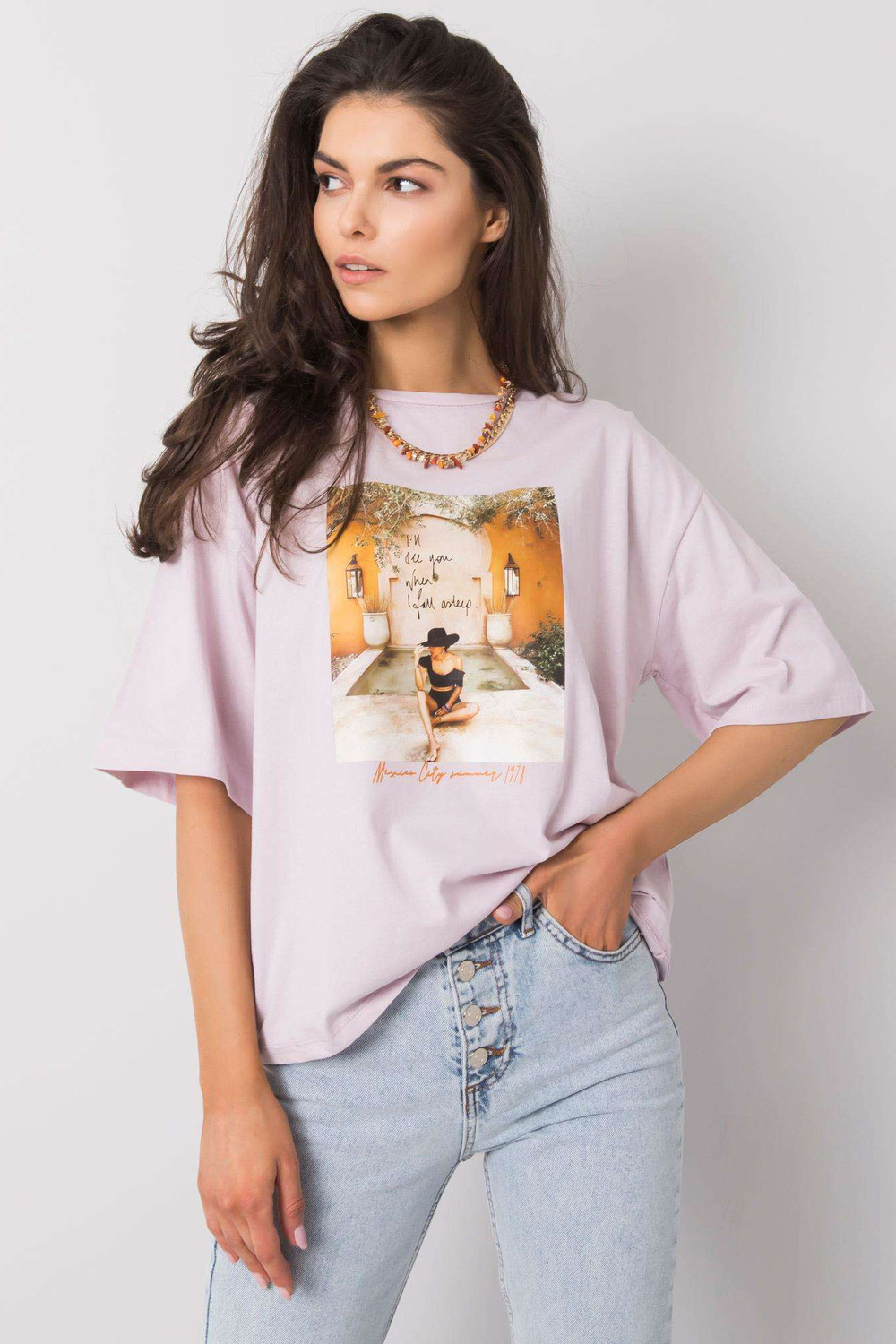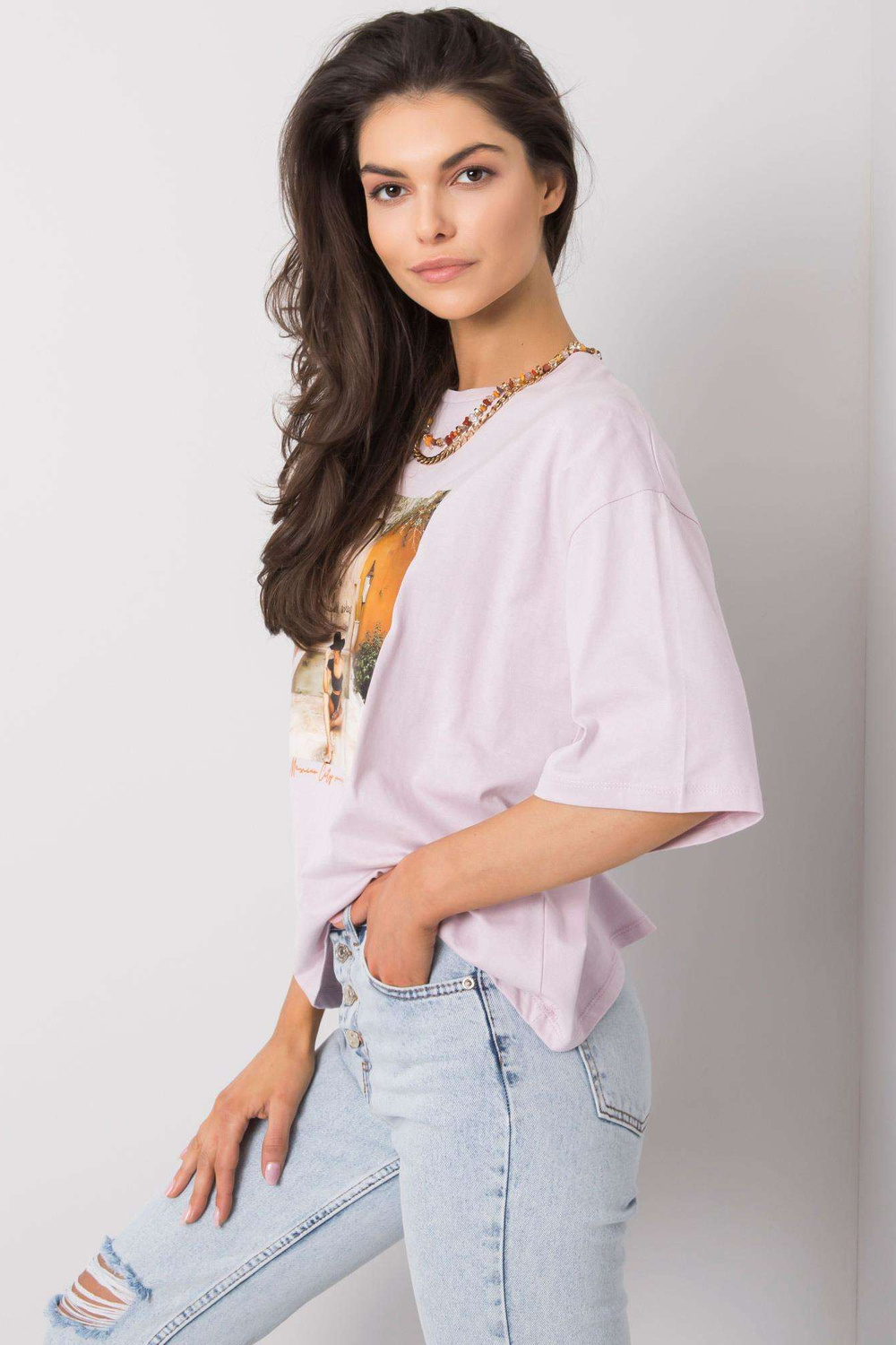 Ceriņu krāsas T-krekls sievietēm ar Morrisa apdruku strong> .