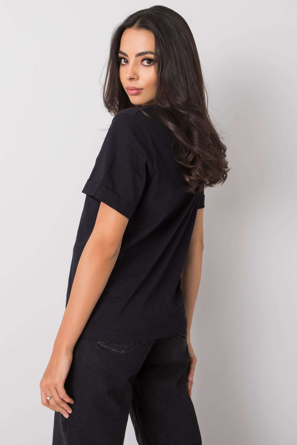 T-krekla izmēri S izmēra plakanā formā: padusē platums - 48 cm, kopējais garums - 56 cm