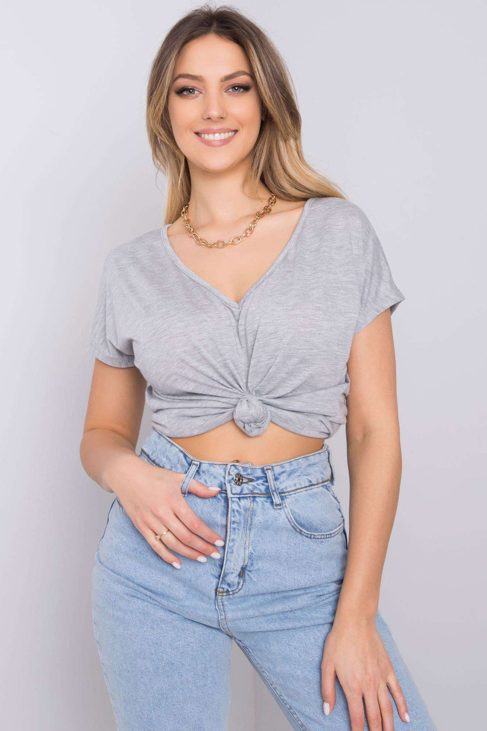 Reja pelēkais T-krekls. materiāla sastāvs: 90% viskoze, 10% elastāns mazgāšanas metode: veļas mašīna 30°C Modelis valkā S izmēru. Modeļa izmēri: augums 172 cm, krūtis 89 cm, viduklis 65 cm, gurni 89 cm. T-krekla izmēri S izmērā, mērot fla
