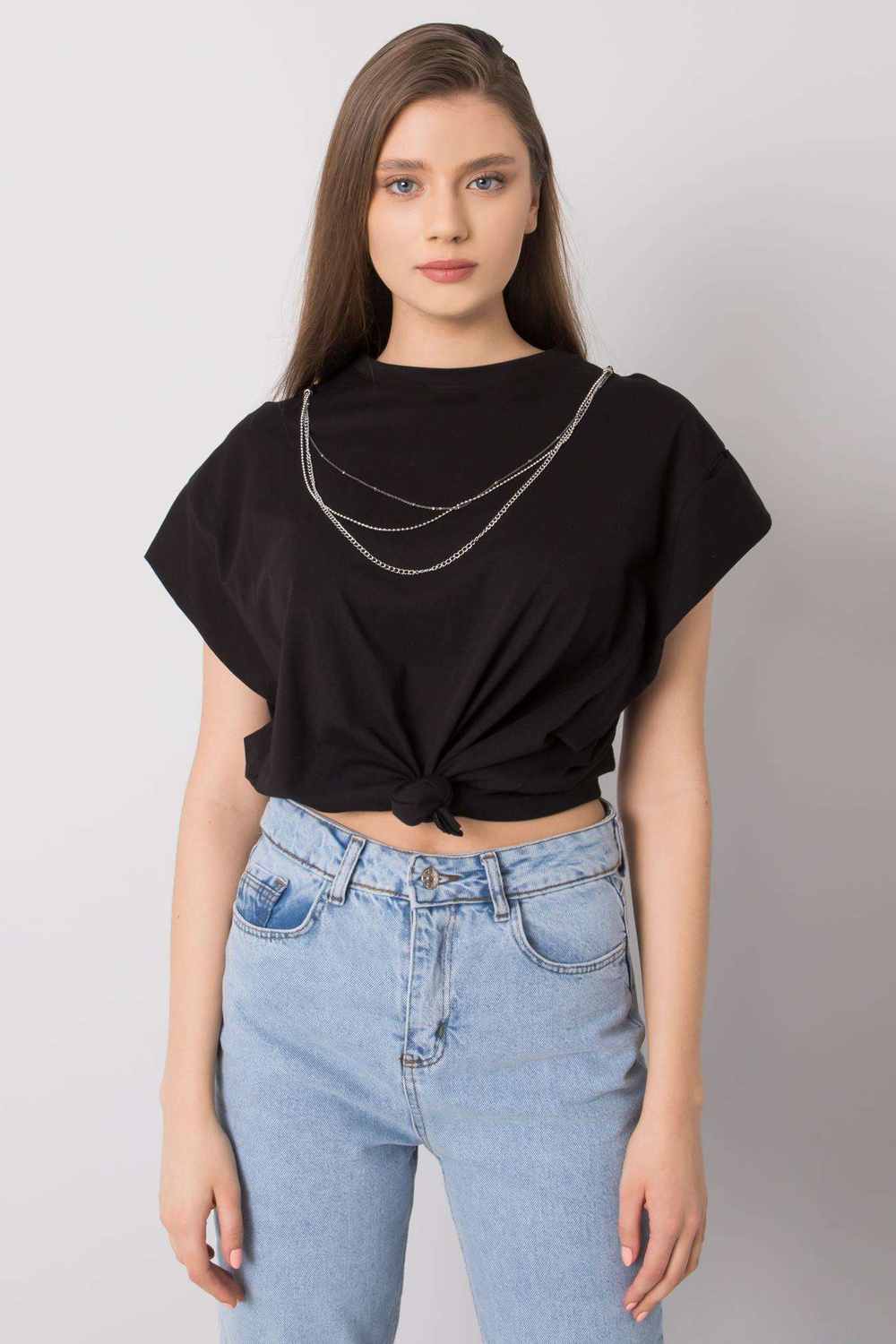 Melns T-krekls ar kaklarotu Arianna RUE PARIS