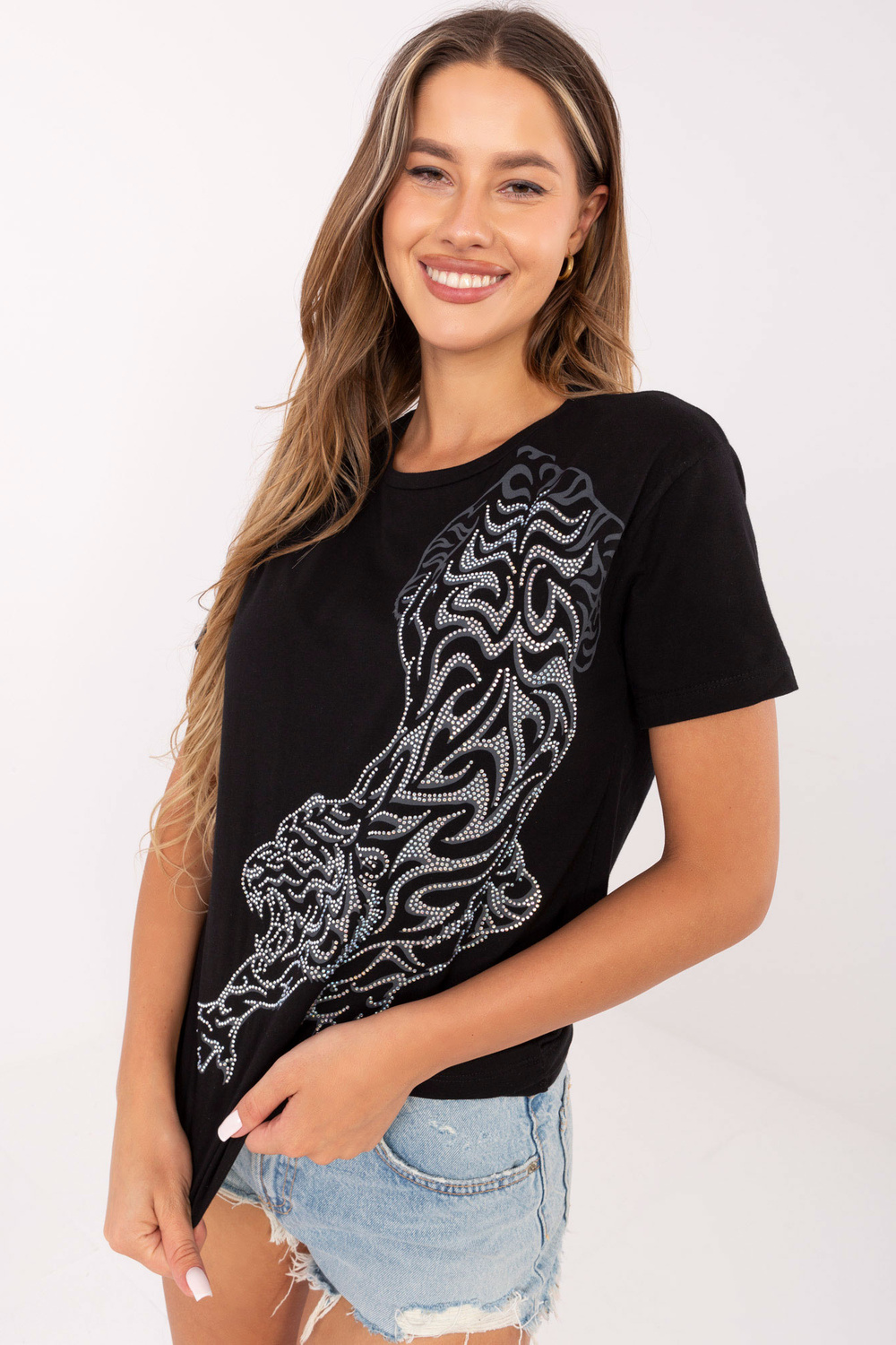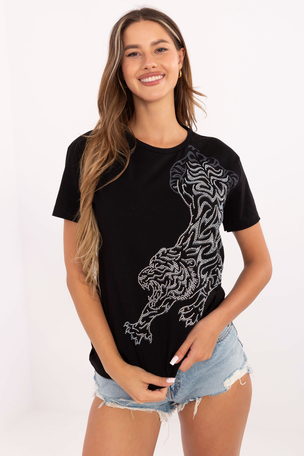 T-krekla izmēri S izmērā, mērot plakaniski: paduses platums - 48 cm, kopējais garums - 62 cm