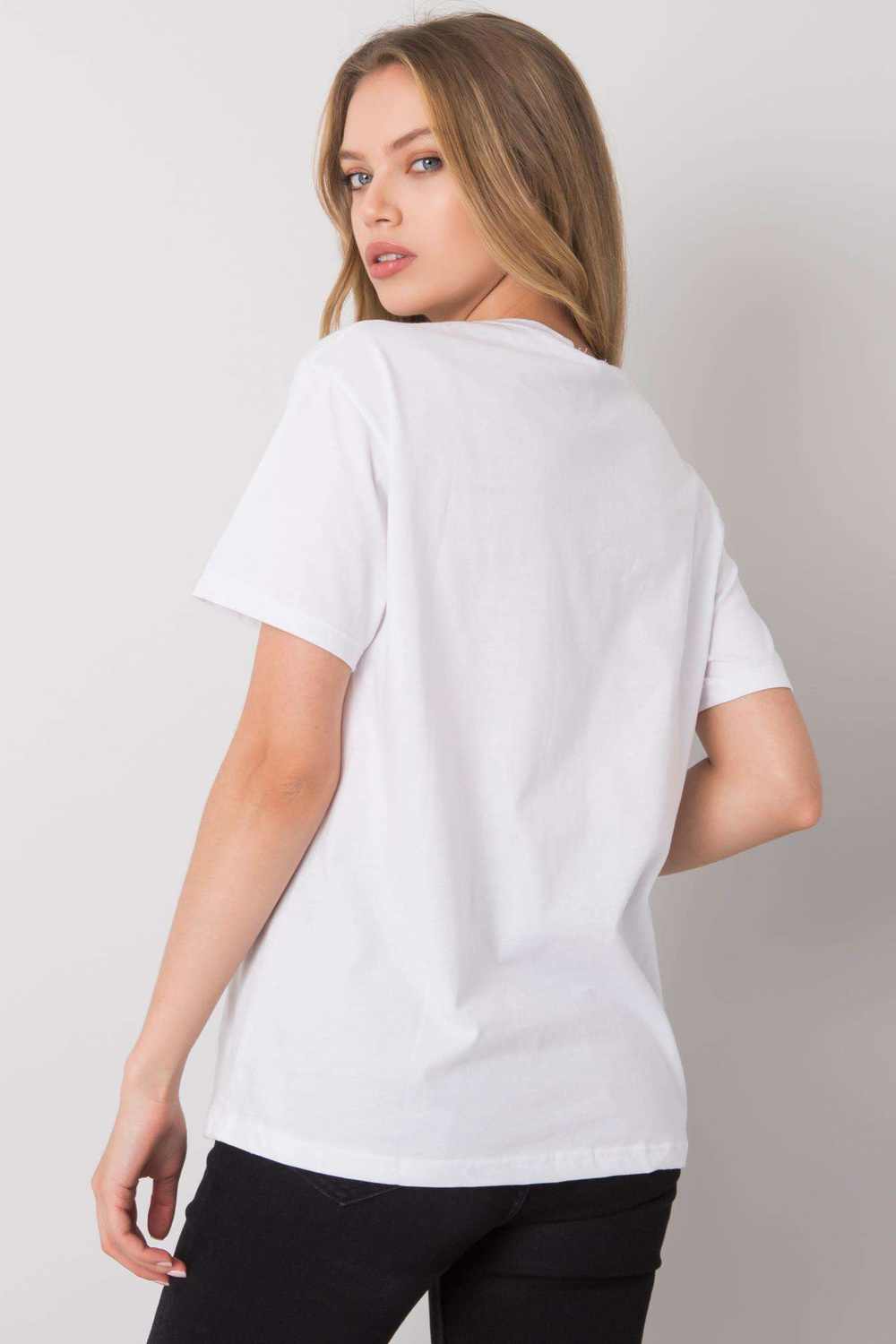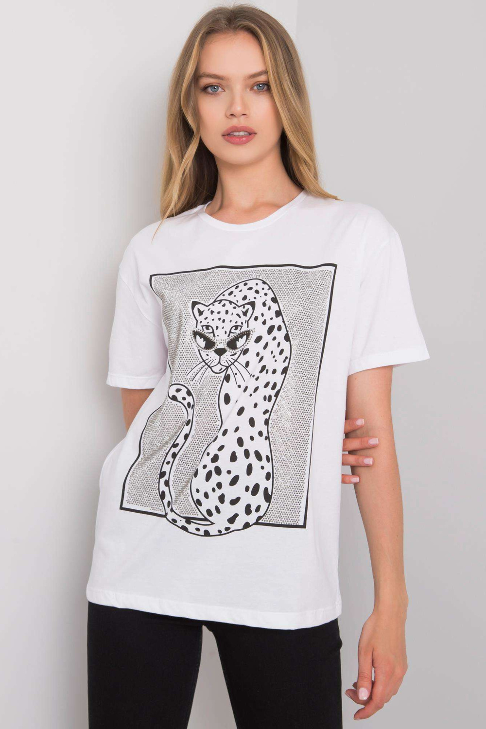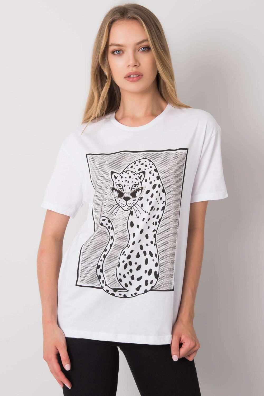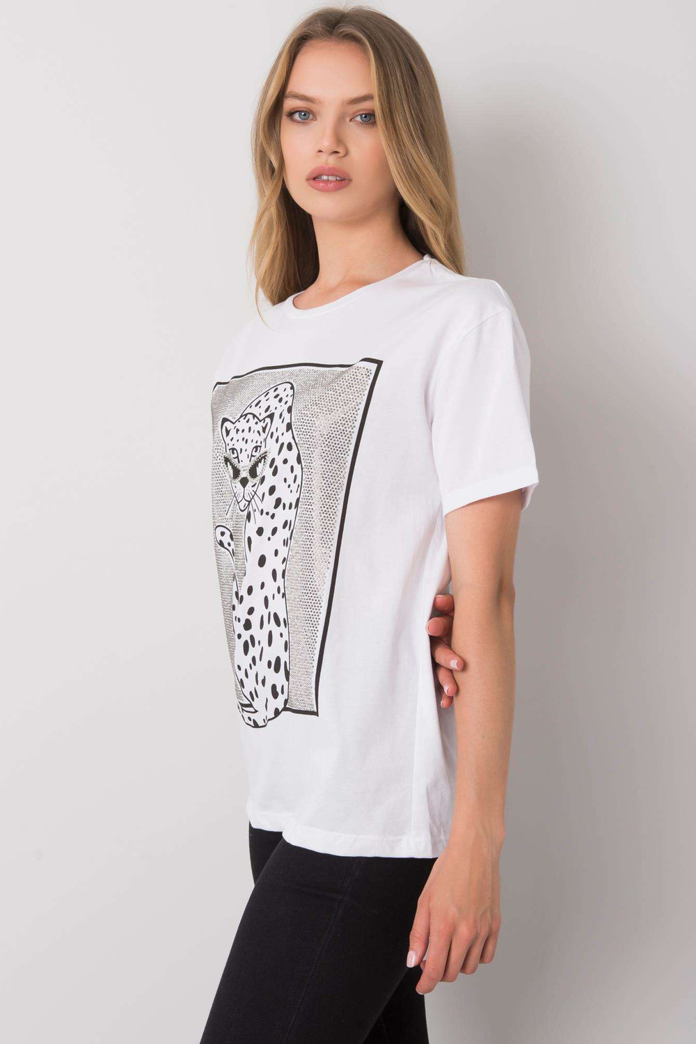 Balts T-krekls ar Sarra apdruku. piedevas: rhinestones materiālssastāvs: 100% kokvilna mazgāšanas metode: veļas mašīna 30°C Modelis valkā S izmēru. Modeļa izmēri: augums 174 cm, krūtis 82 cm, viduklis 62 cm, gurni 89 cm. T-krekla izmēra izmēri
