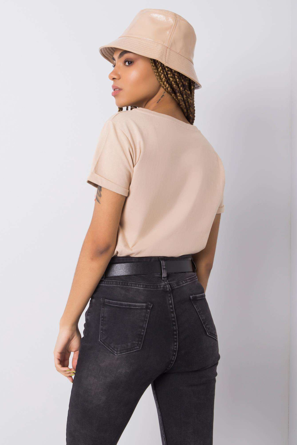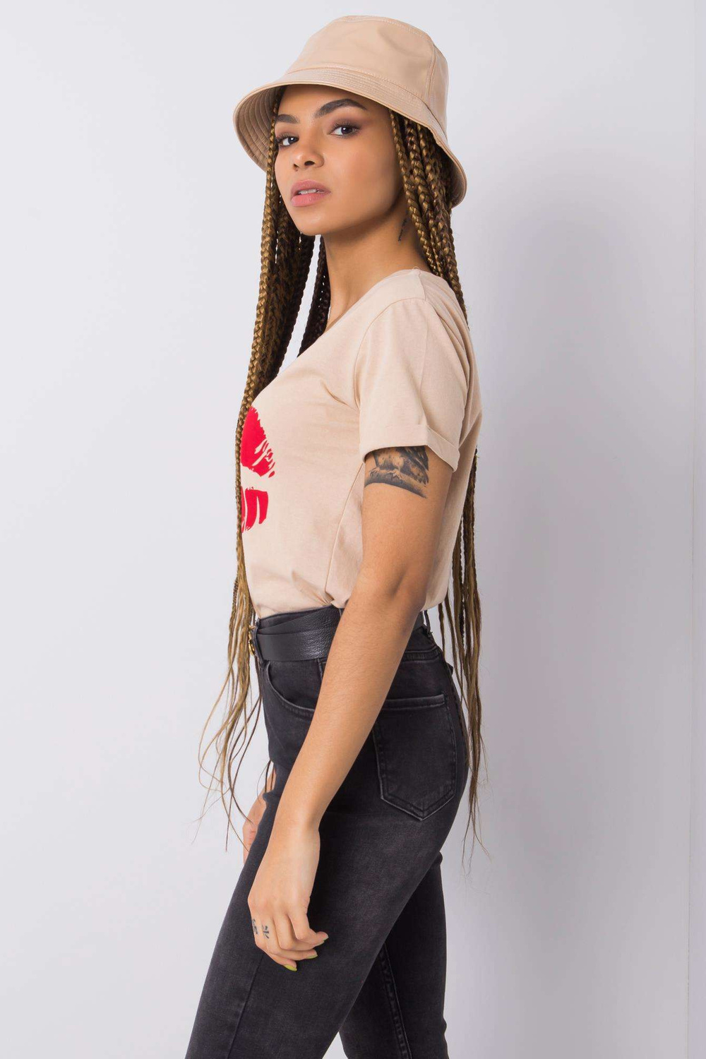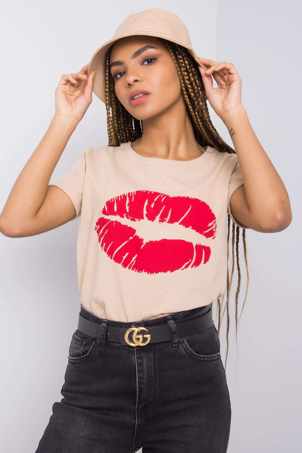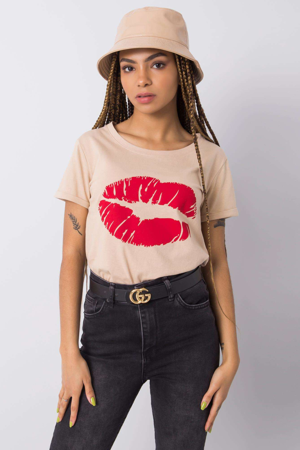 Bēšs T-krekls ar apdruku Tiziana OCH BELLA.