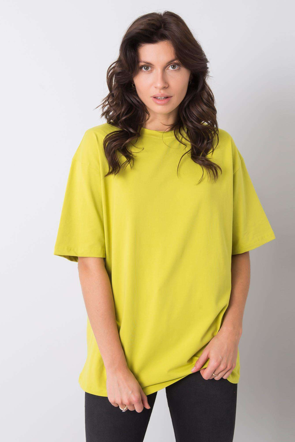 Viena izmēra T-krekla izmēri plakanā formā: paduses platums - 55 cm, kopējais garums - 73 cm