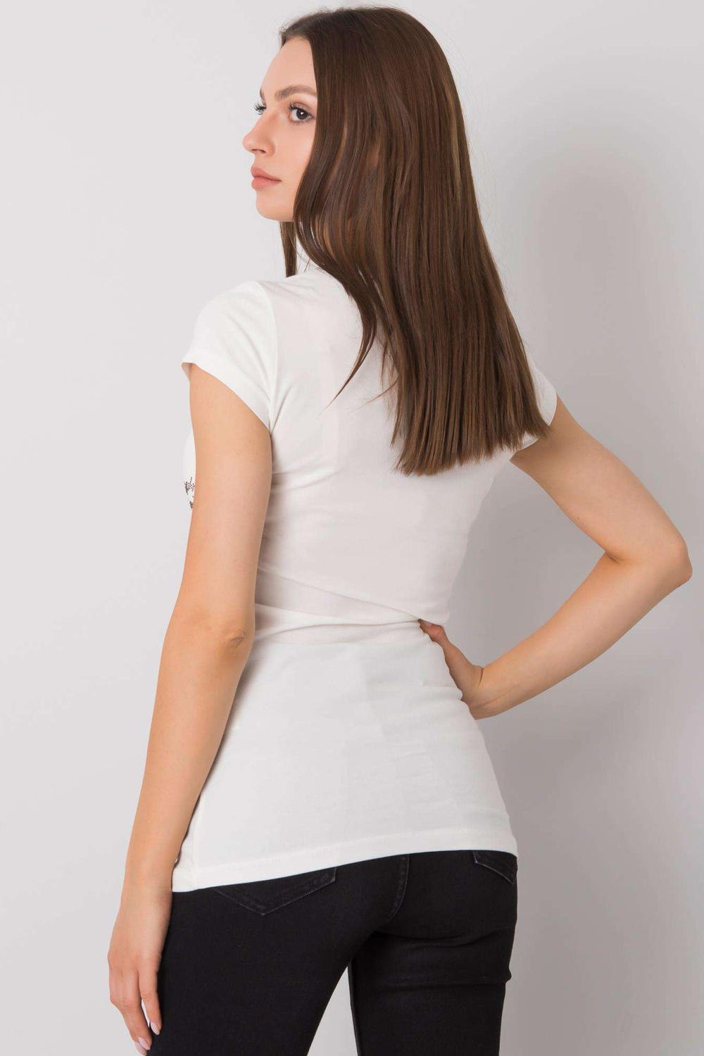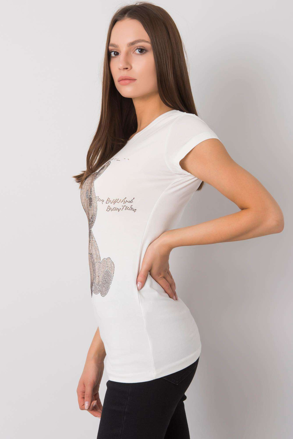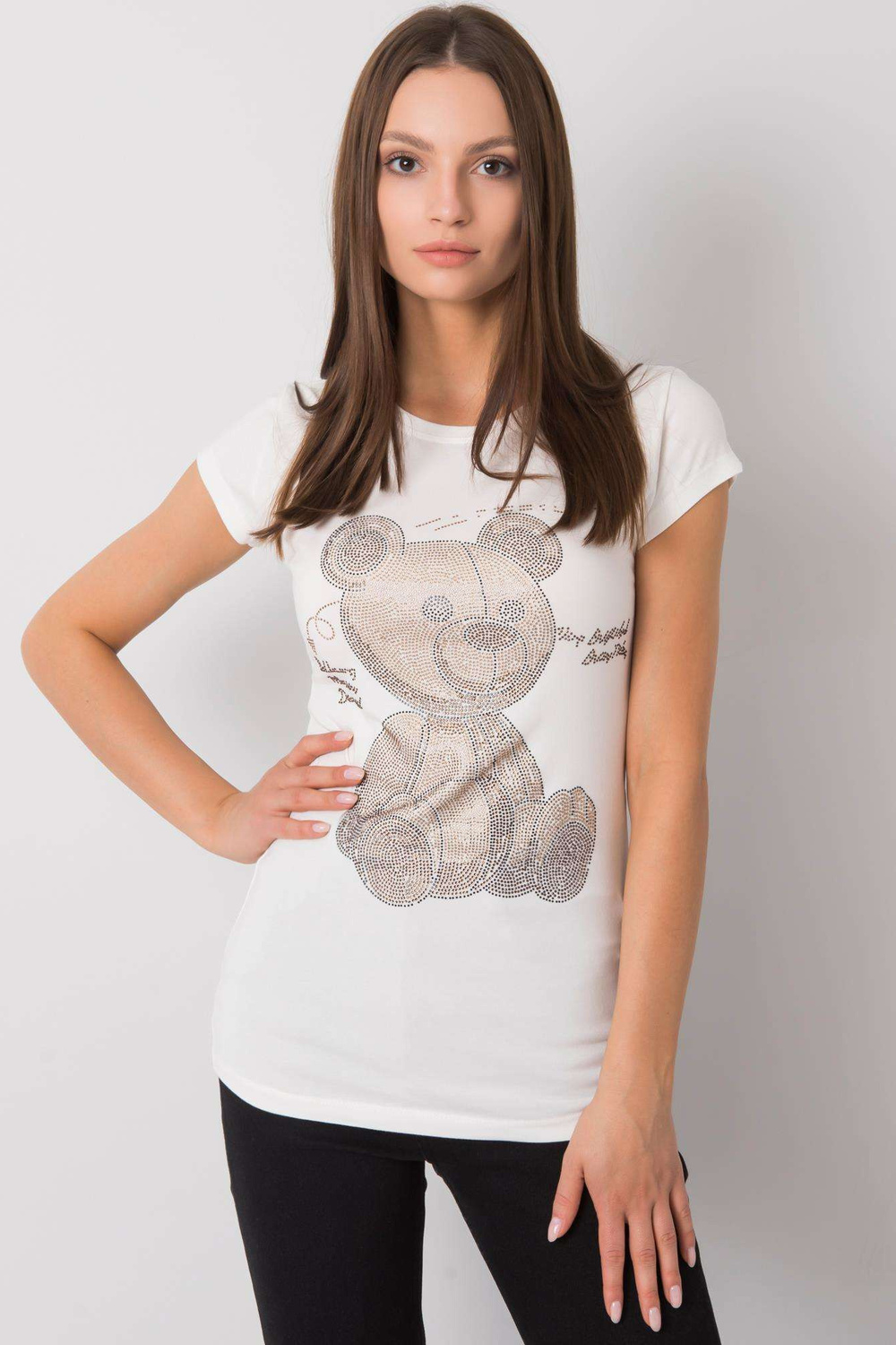 Ecrut-krekls ar Misha aplikāciju. ekstras: rhinestones materiālssastāvs: 90% kokvilna, 10% elastāns mazgāšanas metode: veļas mašīna 30°C Modelis valkā S izmēru. Modeļa izmēri: augums 172 cm, krūtis 84 cm, viduklis 60 cm, gurni 88 cm. Izmēri