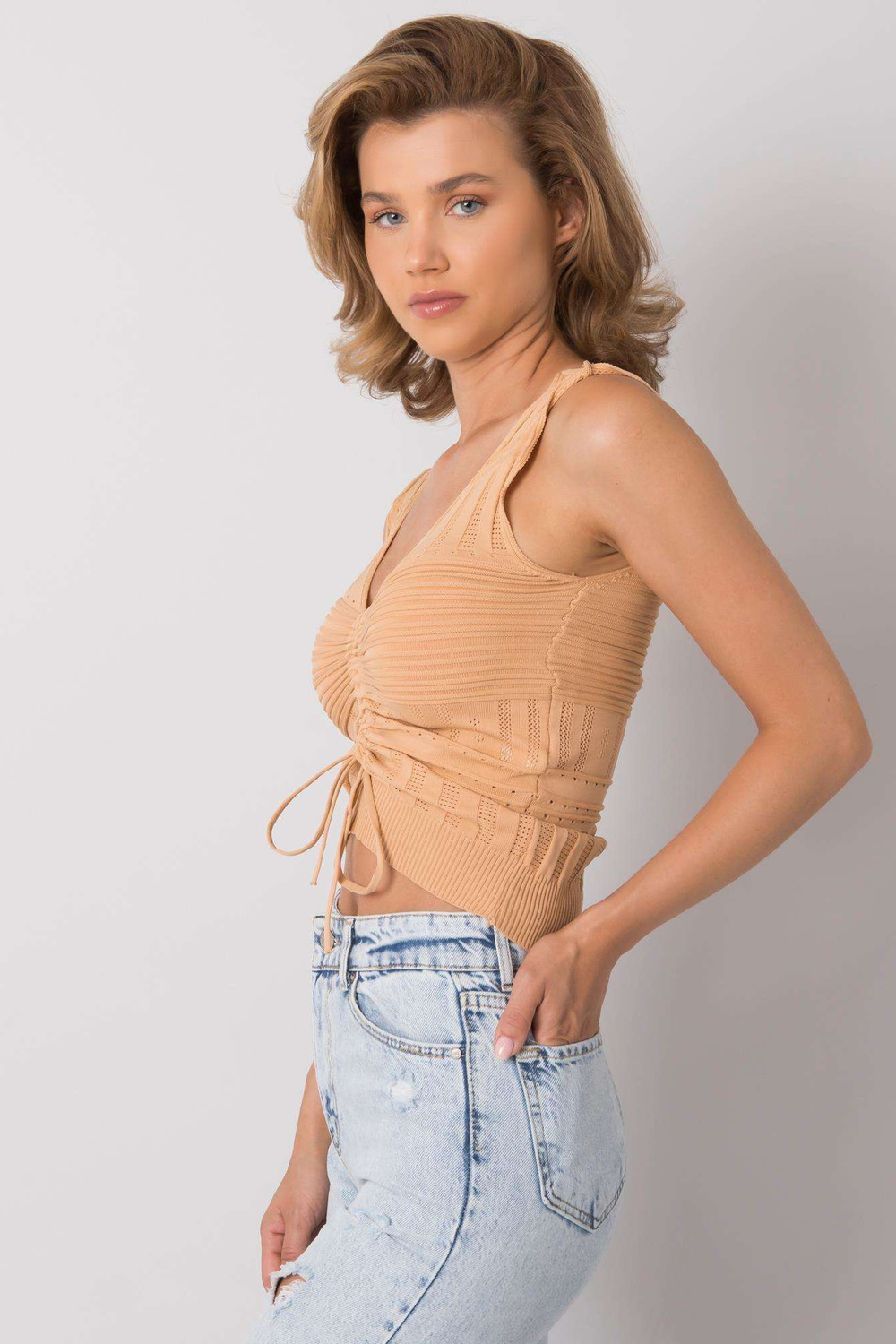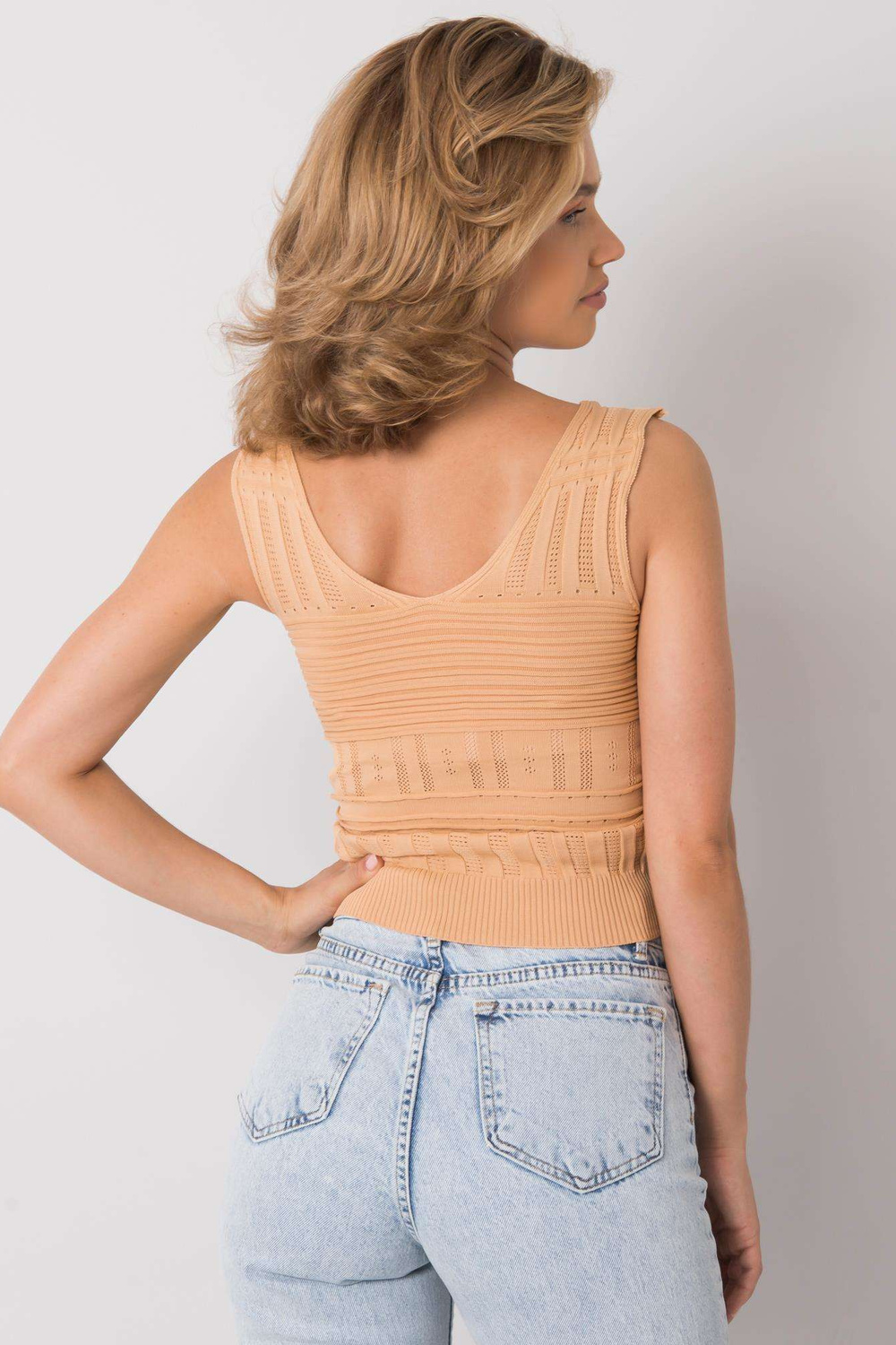 Kameli trikotāžas tops ar Astrīdas ribiņu.