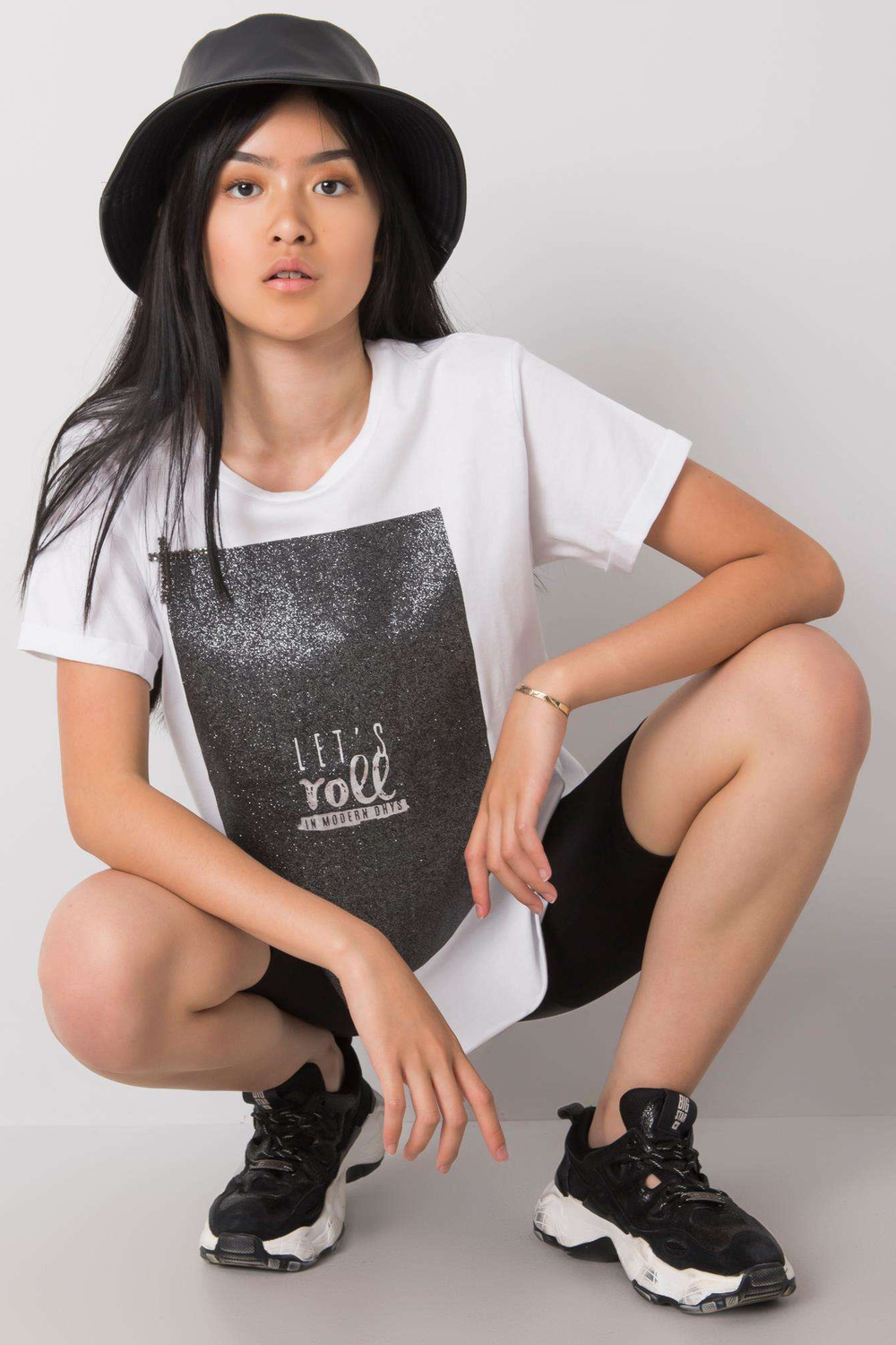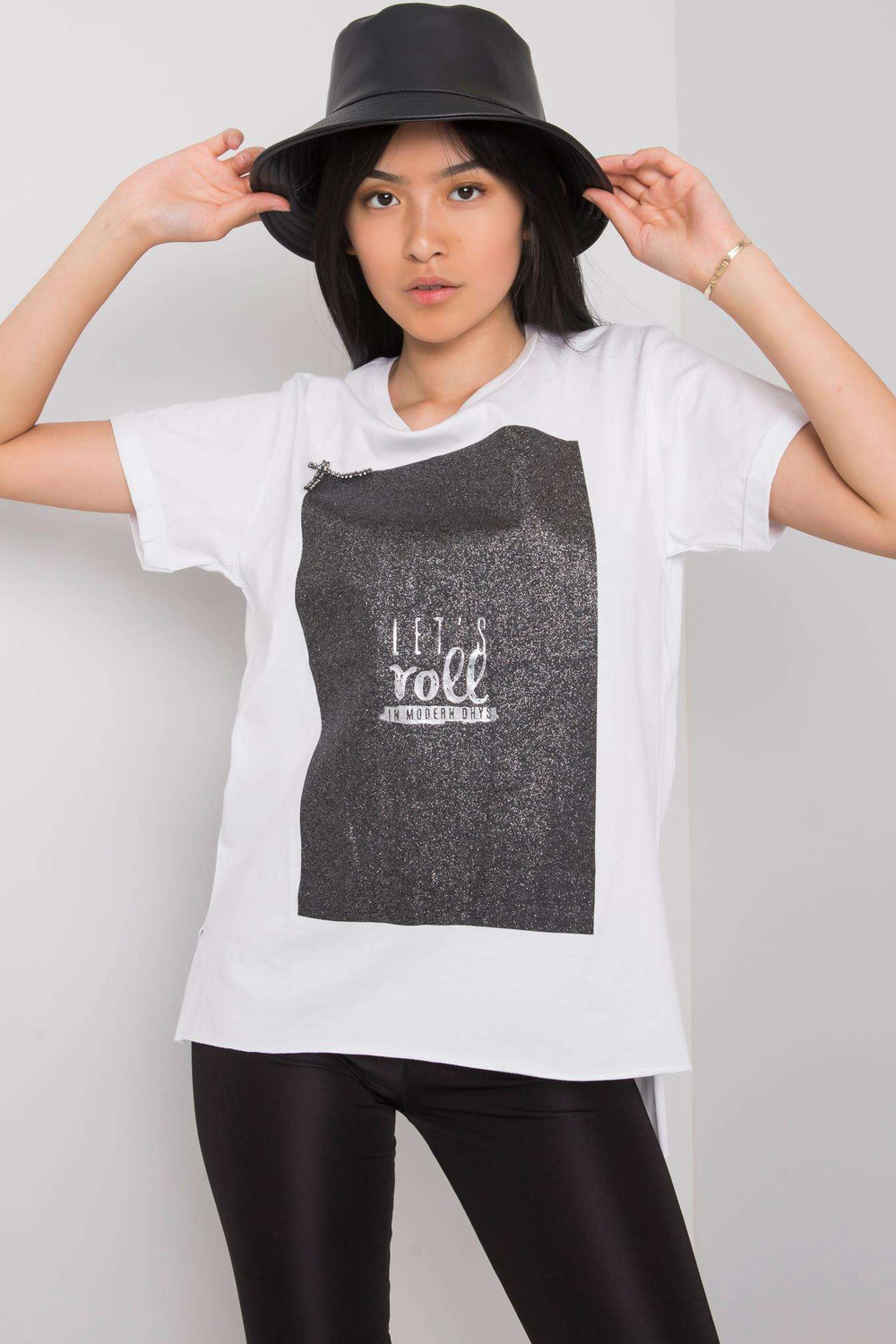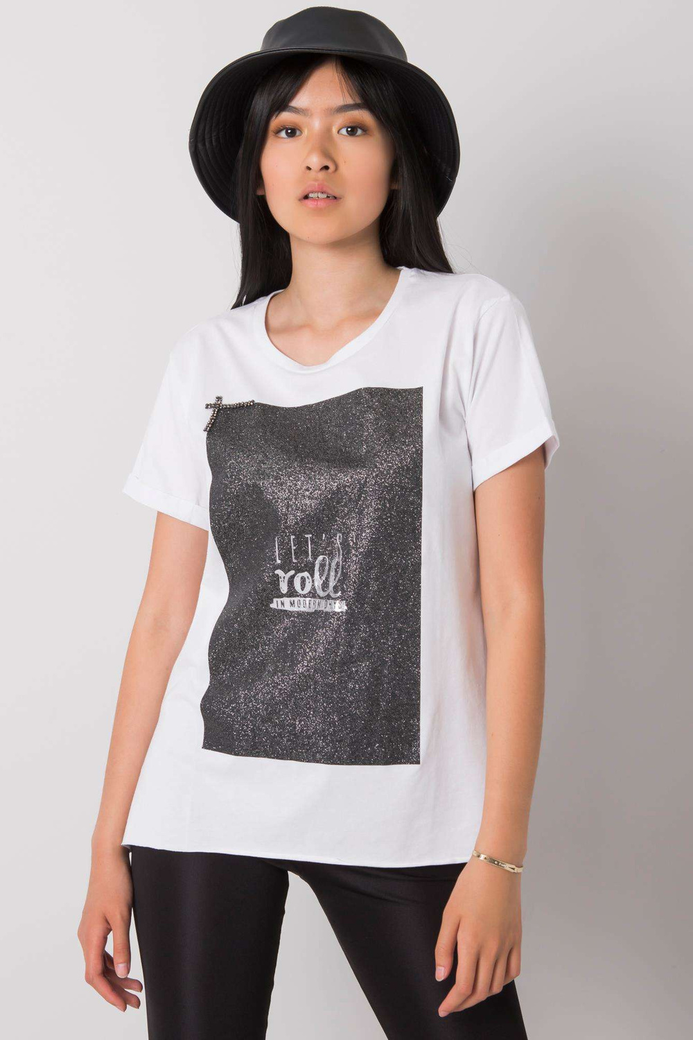 WhiteMoon T-krekls. ekstras: rhinestones materiālssastāvs: 100% kokvilna mazgāšanas metode: veļas mašīna 30°C Modelis valkā S izmēru. Modeļa izmēri: augums 167 cm, krūtis 73 cm, viduklis 64 cm, gurni 91 cm. T-krekla izmēri S izmēram izmērīti