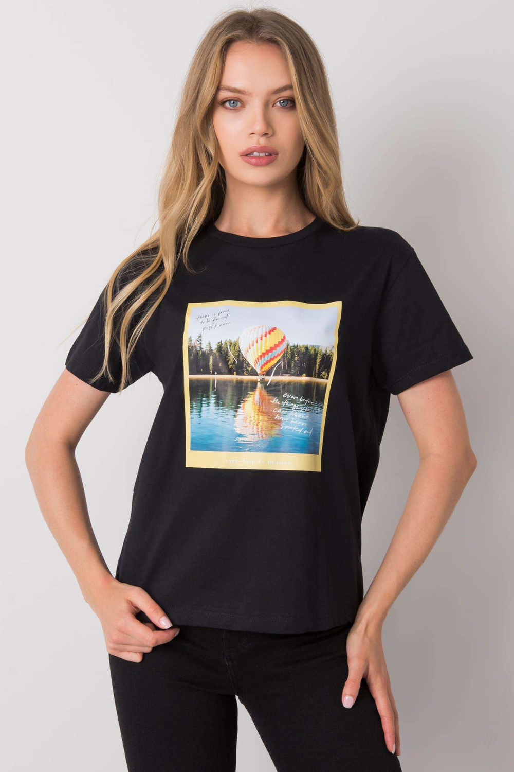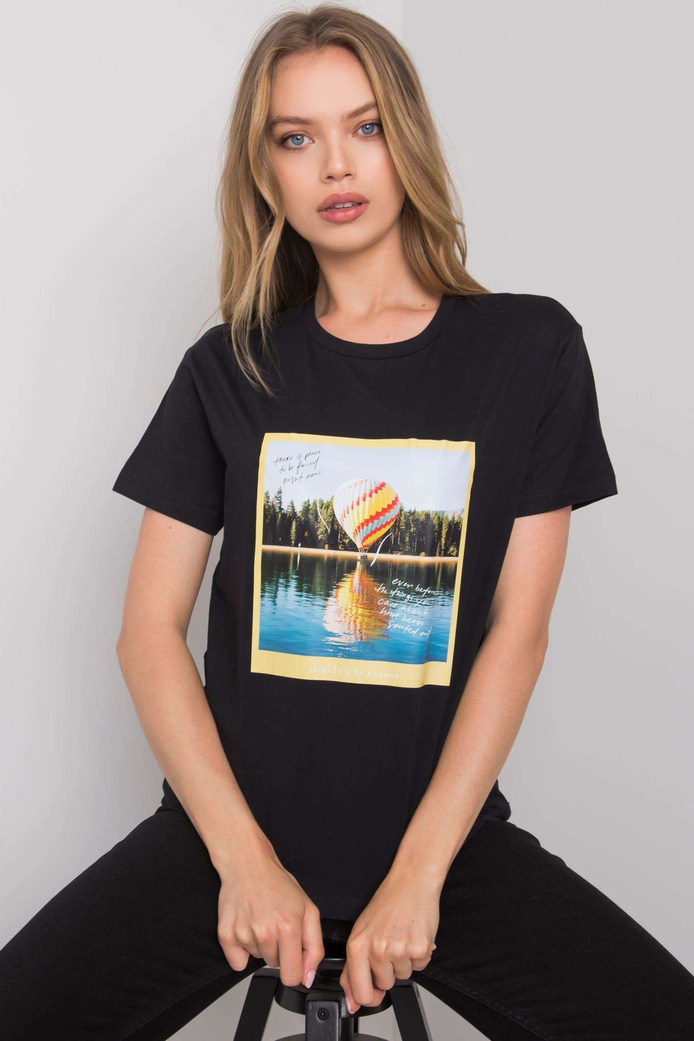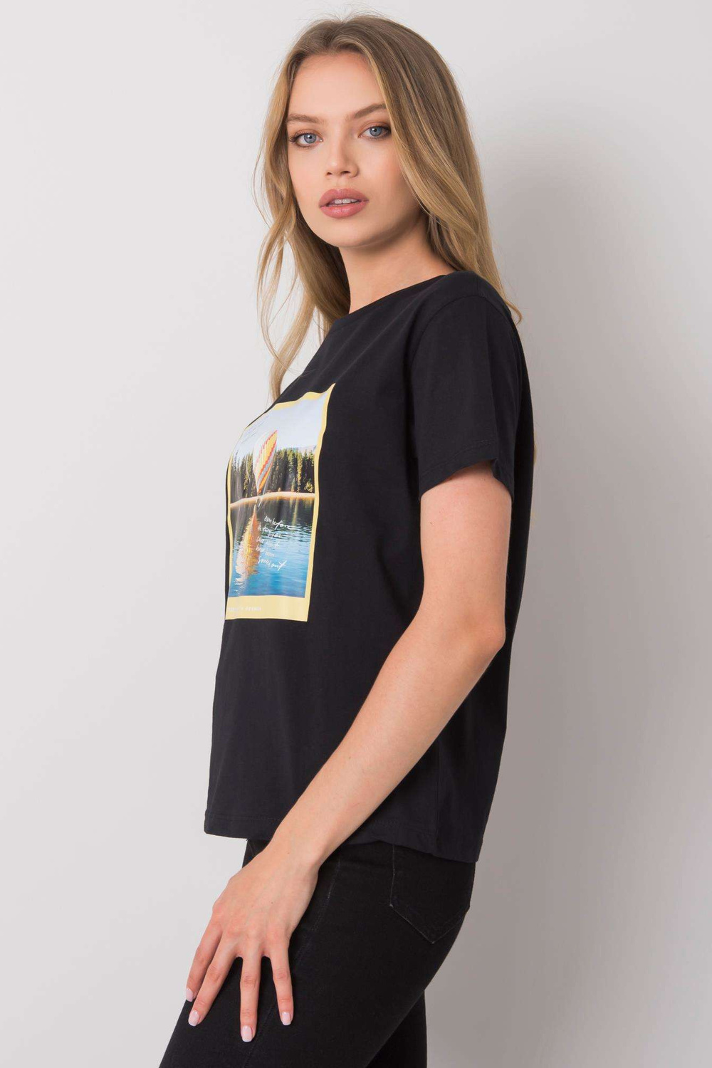 T-krekla izmēri S izmērā, mērot plakanā stāvoklī: paduses platums - 48 cm, kopējais garums - 64 cm