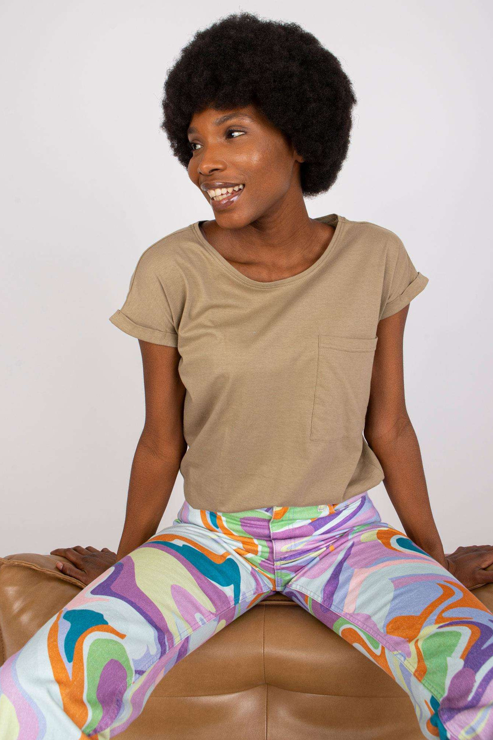 T-krekla izmēri S izmēram mērot plakanā stāvoklī: platums zem padusēm - 48 cm, kopējais garums - 62 cm.