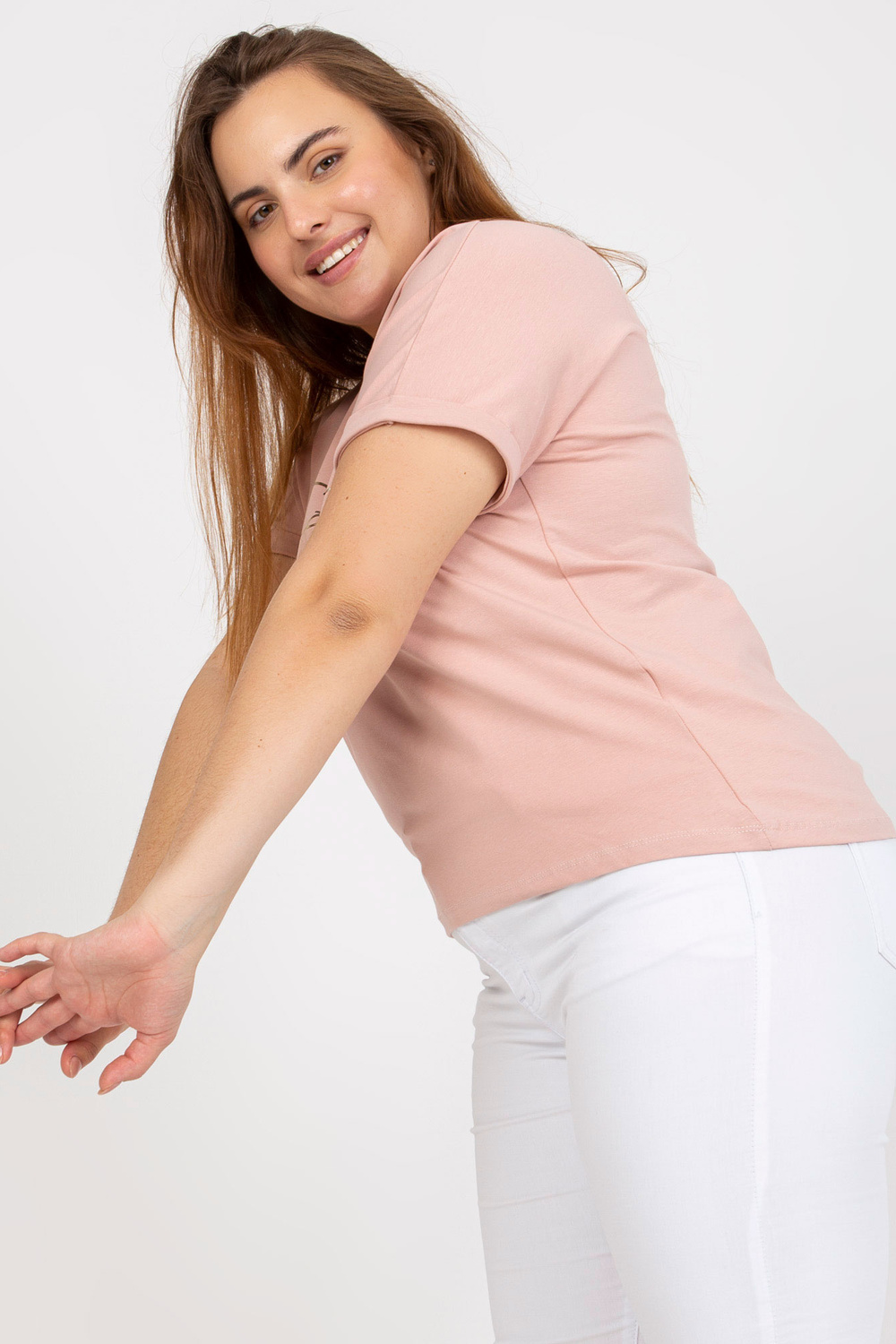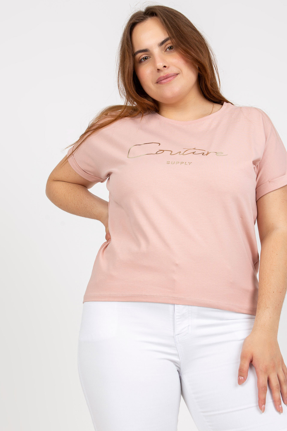 Netīri rozā liela izmēra sieviešu T-krekls ar uzrakstu.