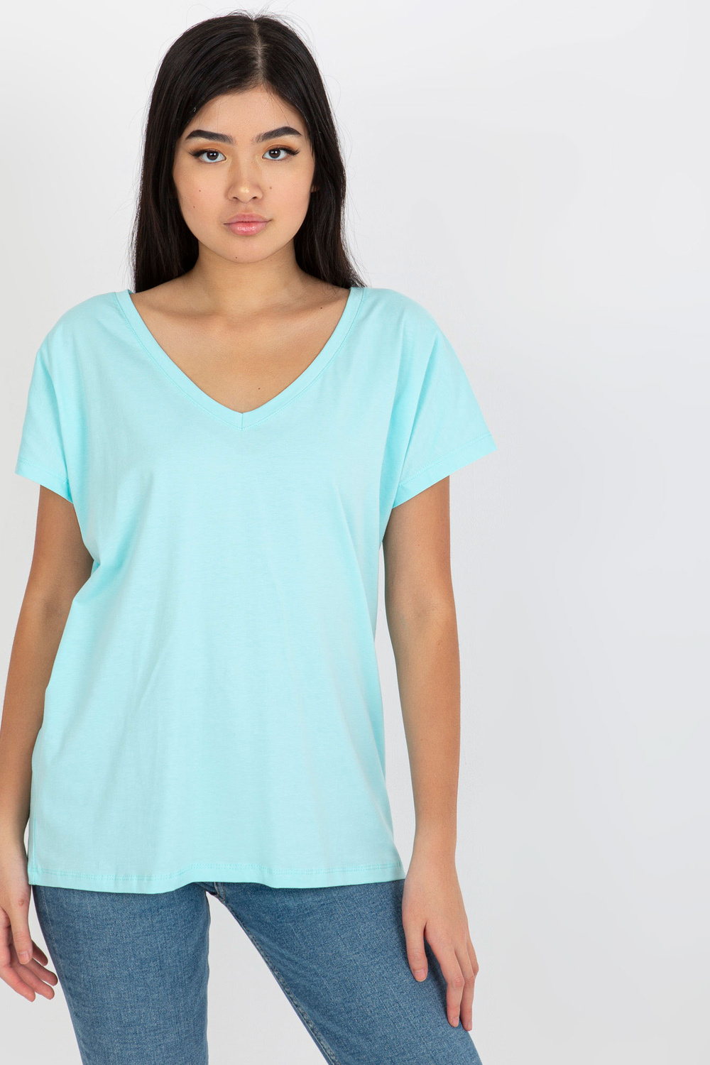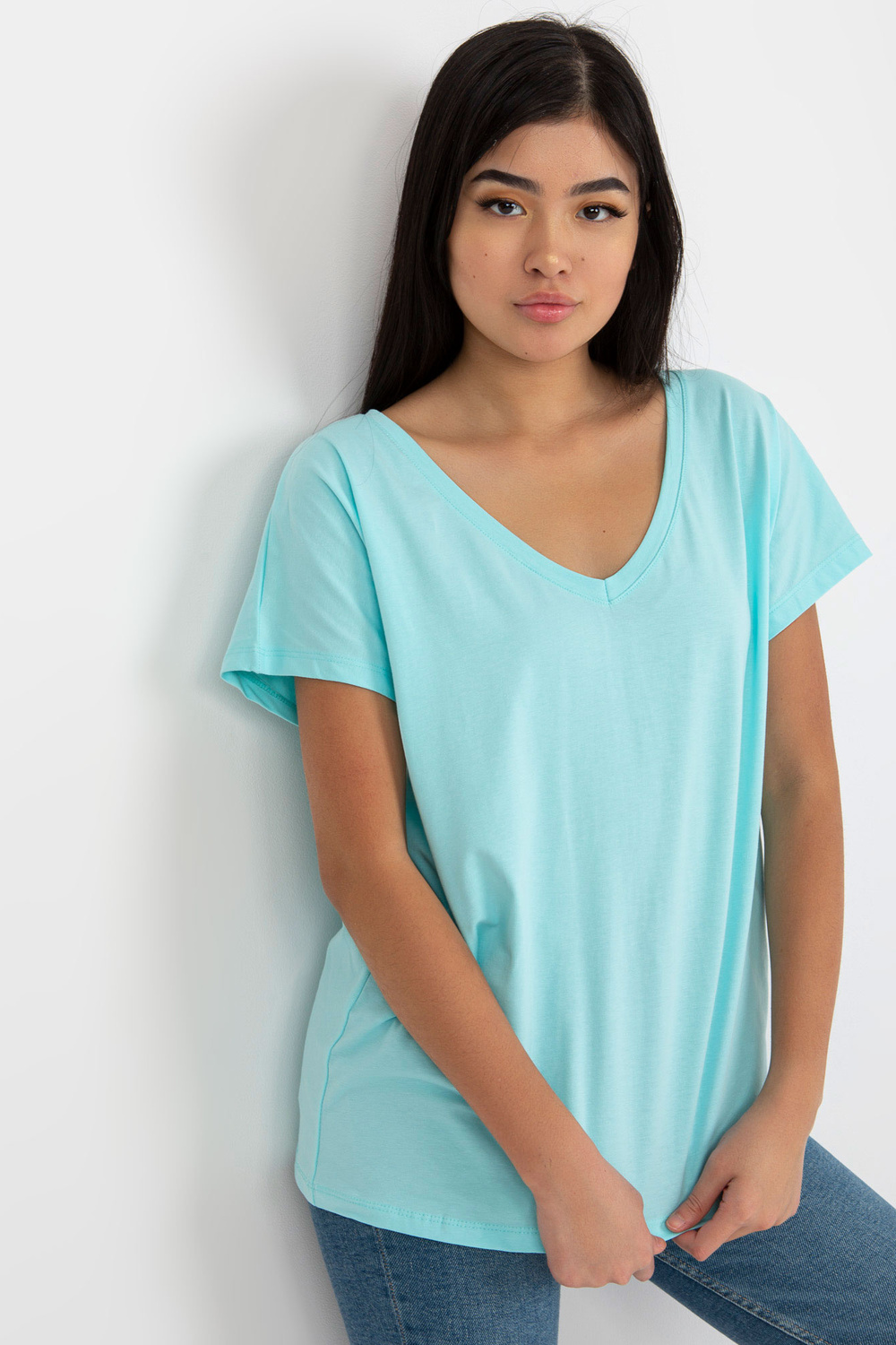 Gaiši zils klasisks pamata T-krekls ar V kakla izgriezumu Emory.