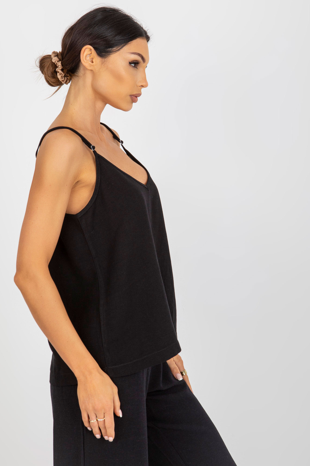 Melns sieviešu tops ar V veida kakla izgriezumu OCH BELLA.