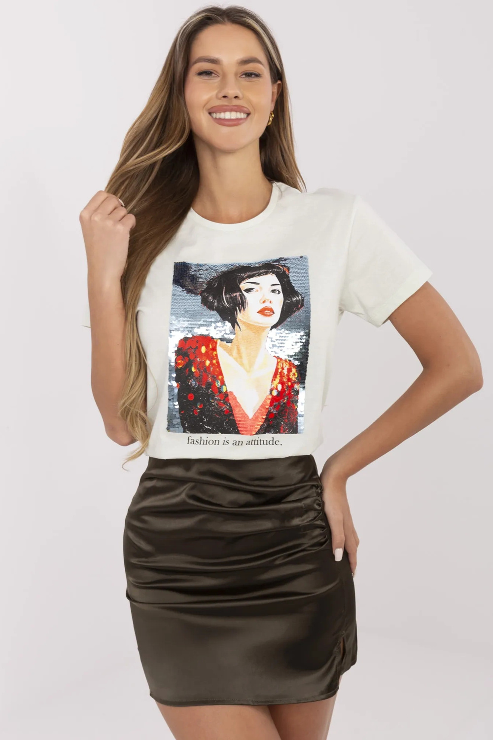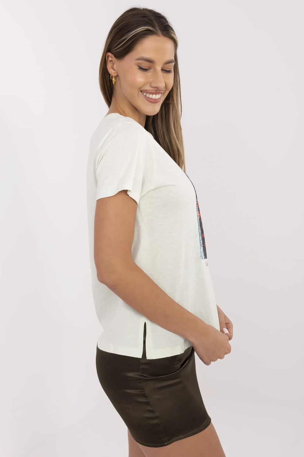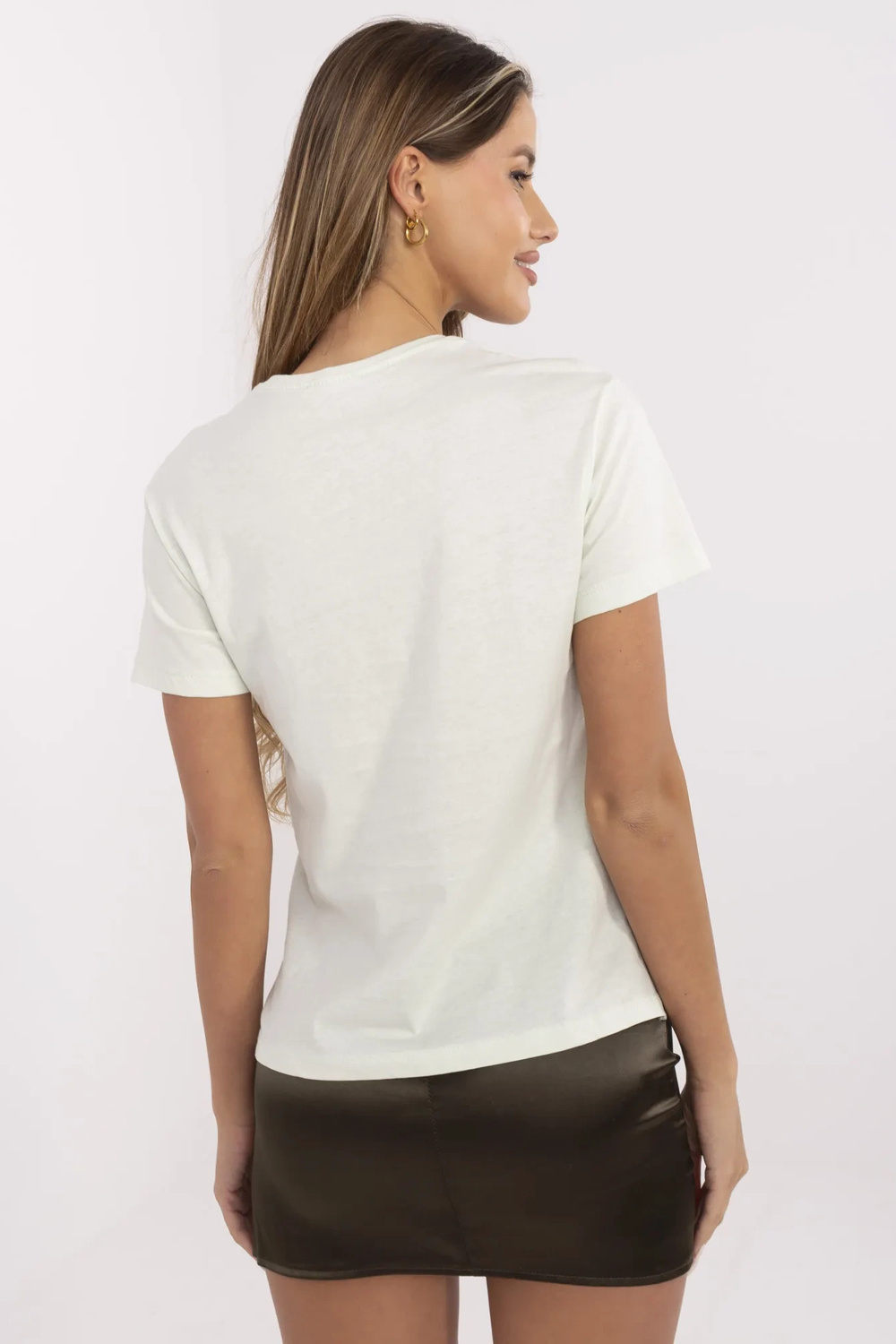 T-krekla izmēri S izmēram mērot plakanā stāvoklī: platums zem padusēm - 44 cm, kopējais garums - 58 cm