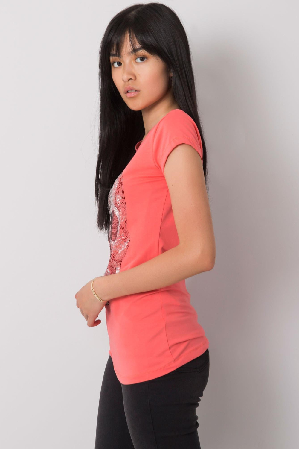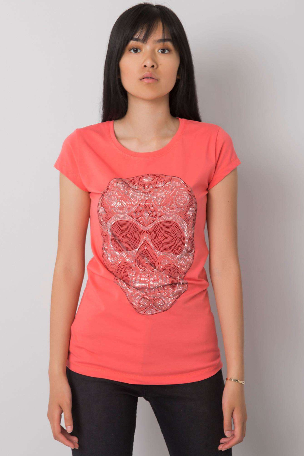 Koralta krekls ar Skull lietotni. ekstras: rhinestones materiālssastāvs: 90% kokvilna, 10% elastāns mazgāšanas metode: veļas mašīna 30°C Modelis valkā S izmēru. Modeļa izmēri: augums 167 cm, krūtis 73 cm, viduklis 64 cm, gurni 91 cm. T-sh