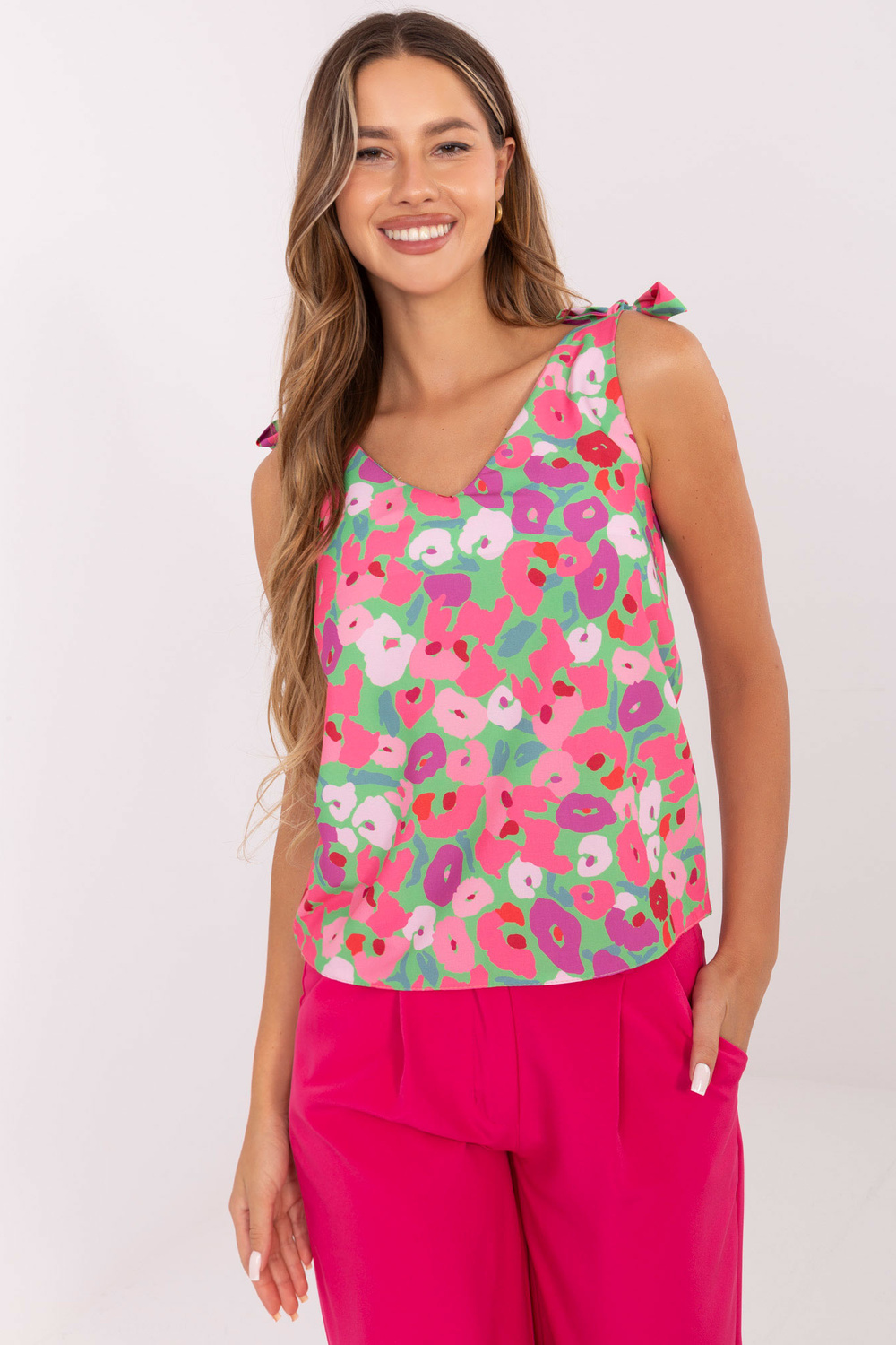 Zaļi rozā vasaras tops ar apdrukām RUE PARIS .