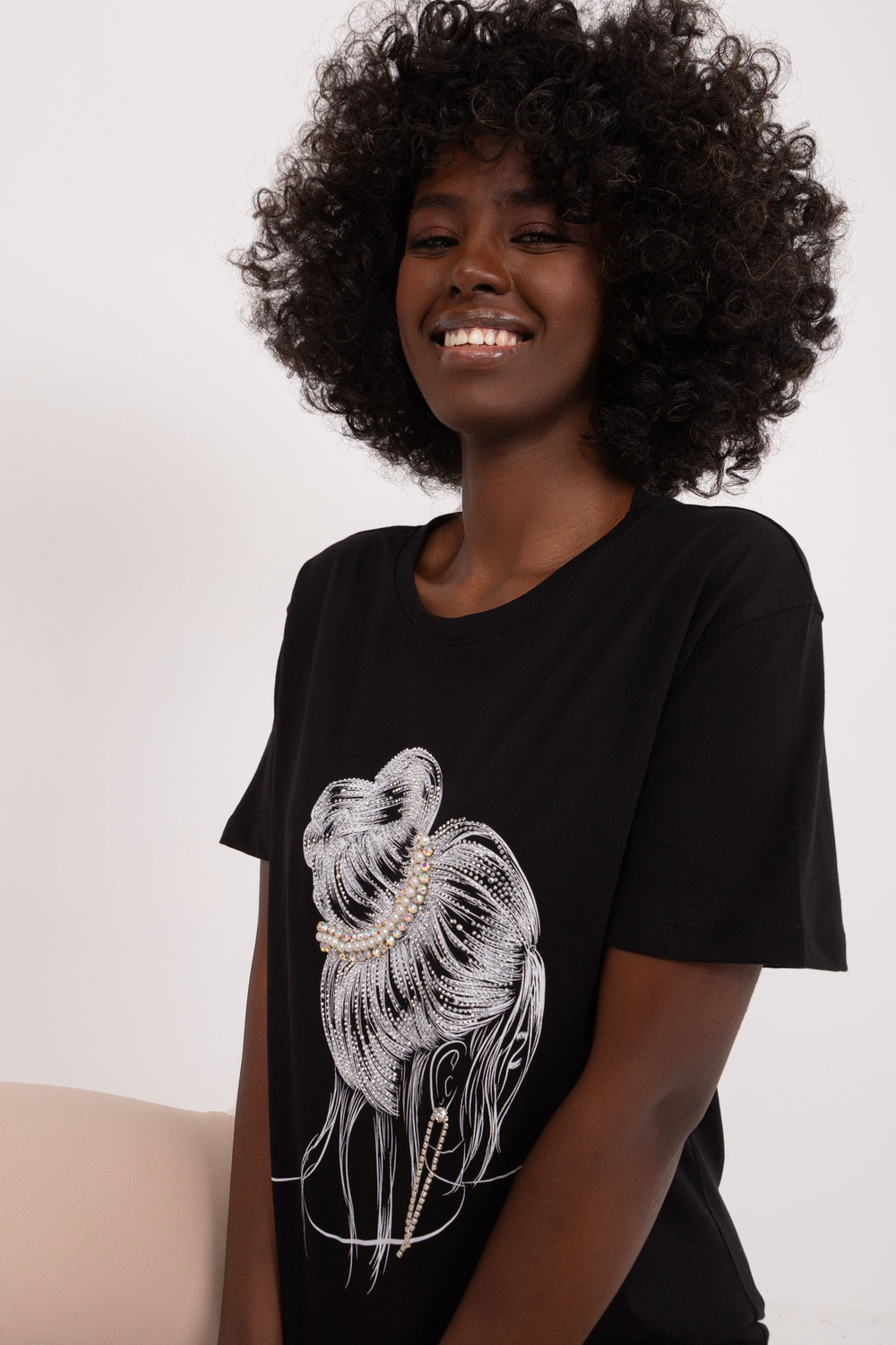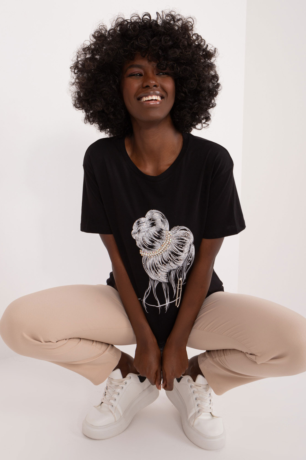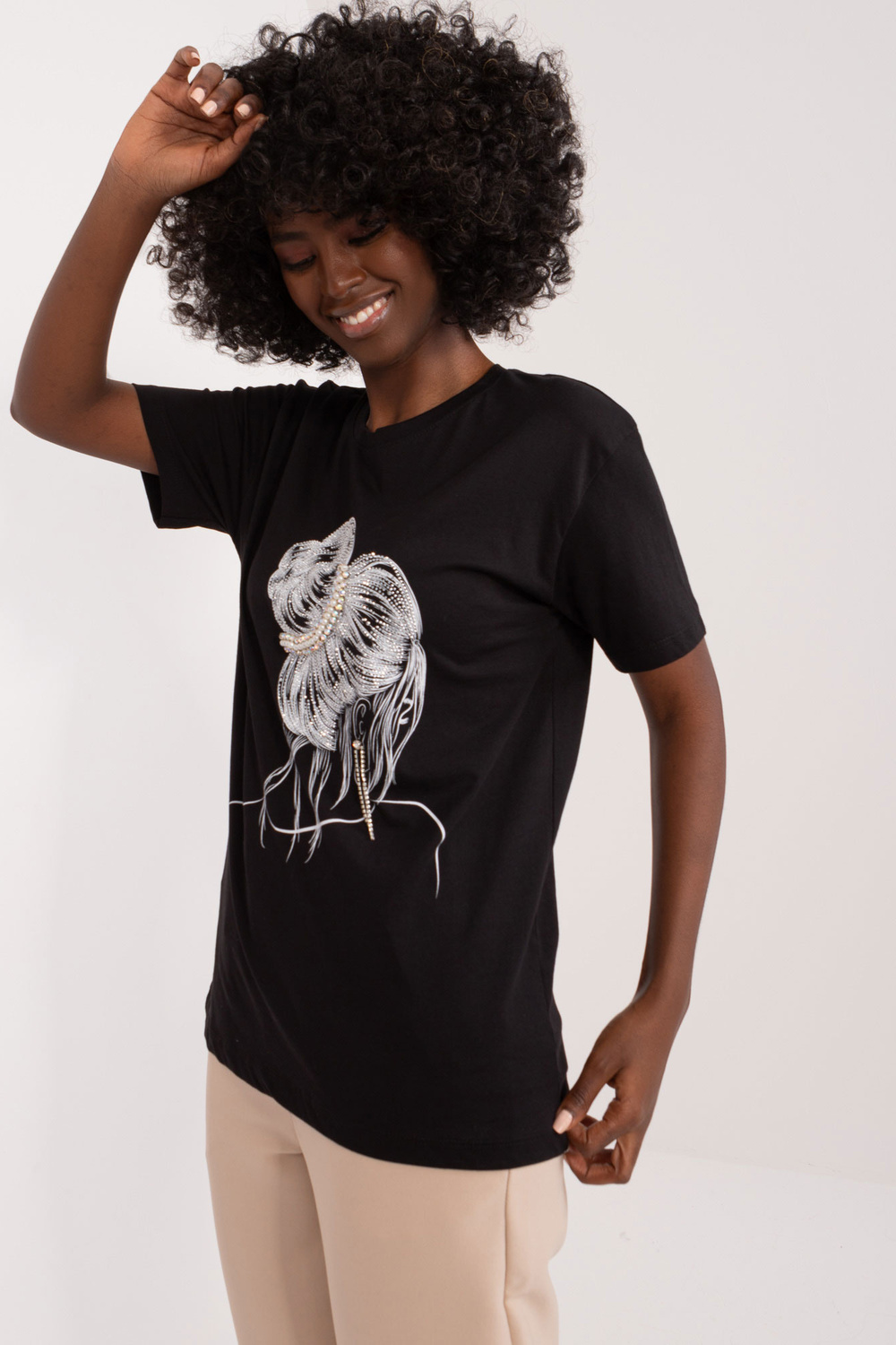 T-krekla izmēri S izmēram, mērot plakaniski: paduses platums - 48 cm, kopējais garums - 62 cm.